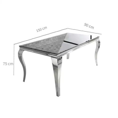 The dining table has a plain glass top of 15mm. This Exquisite Dinning Table comes with six chairs made of strong leather material.