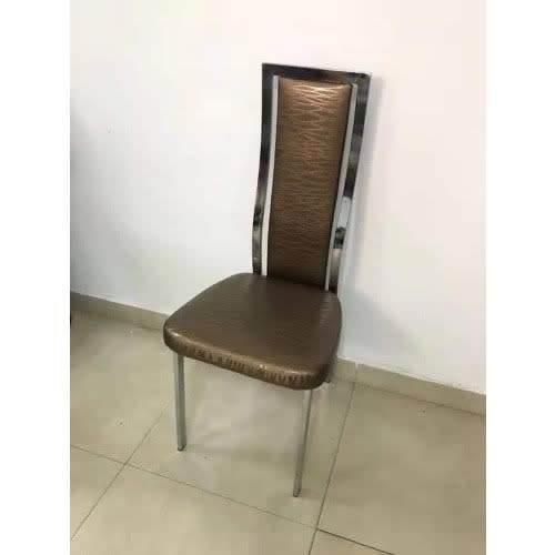 Cafe dining set with matching sits.the table is silicon hard glass and solid metal support.Has quality leather settee.there are four seats in all, constructed with stainless steel and properly balanced on the ground.