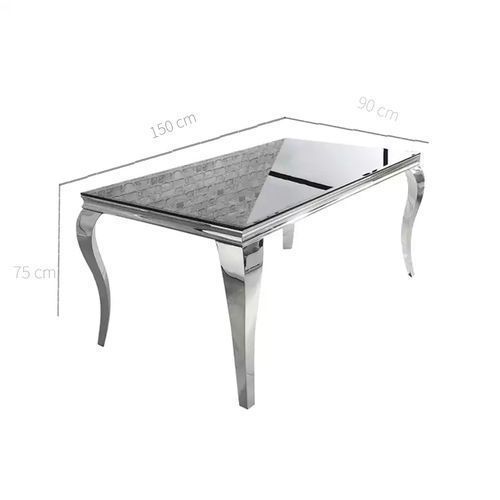 This Exquisite Marble Dining table Showcases an openwork steel frame in a Stainless finished Design, this piece adds a contemporary shine to your space. Its marble top boasts a rectangular silhouette, perfectly seating four people after assembly,