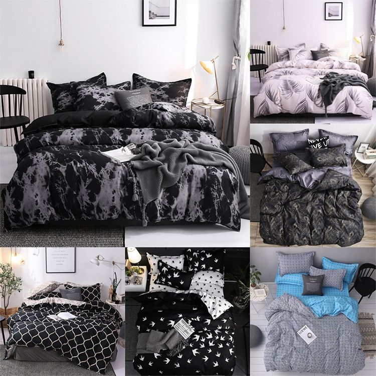 Marble Pattern Set Sanded Printed Quilt Cover Pillowcase