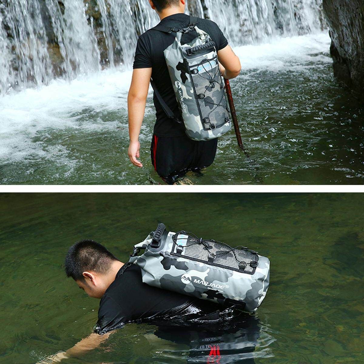 25L Unisex Waterproof Hiking Gear Backpack Dry Luggage Bag Adjustable Shoulder Strap Floating Dry Sack for Camping Travel Outdoor Sailing Floating Boating Rafting Feature: - Dry and wet separation, convenient and practical: The internal pouch velcro design is detachable and easy to handle. Going out to play with wet swimsuits, towels, etc. -Internal pouch : Velcro design, detachable Internal pouch display - Fabric : It is made of 500D PVC mesh fabric, which is waterproof, wear-resistant, tear-resistant and waterproof. It can easily cope with the unexpected weather in the outdoor. - Double shoulder straps for easy decompression : The adjustable shoulder strap design makes the waterproof bag not portable, but also shoulder-to-shoulder or shoulder-shouldered, which can easily cope with various environments and reduce the load on the journey. - Outer mesh bag design :The outer mesh bag is suitable for preventing wet clothes, towels and items, so that the dry items in the bag are separated from the wet objects. - Featured quality buckle : Tested and can be used more than 100000 times. Specification: Material: 0.5MM 500D PVC clip net green Capacity: 25L (diameter 24* high 65CM) Scope of application: outdoor cave exploration, river rafting, rafting, etc. :Navy / Green (optional) The outer mesh bag is suitable for placing the garments, and the inner bag is placed with dry clothes, cameras and the like. Package Includes: 1*WaterproofBackpack Note: 1. Please allow 0.5-1cm differences due to manual measurement. 2. Due to the light and screen difference, the item's may be slightly different from the pictures.