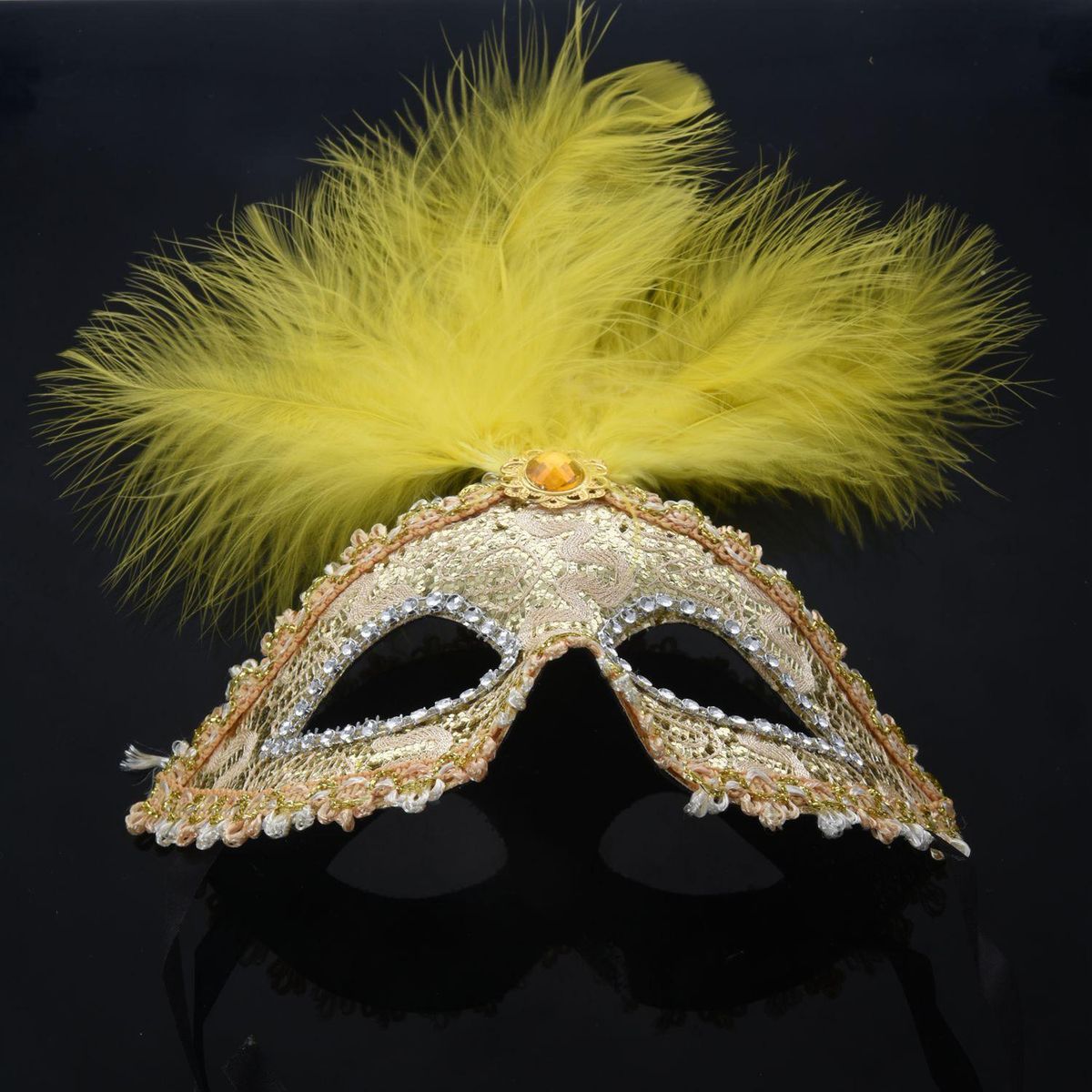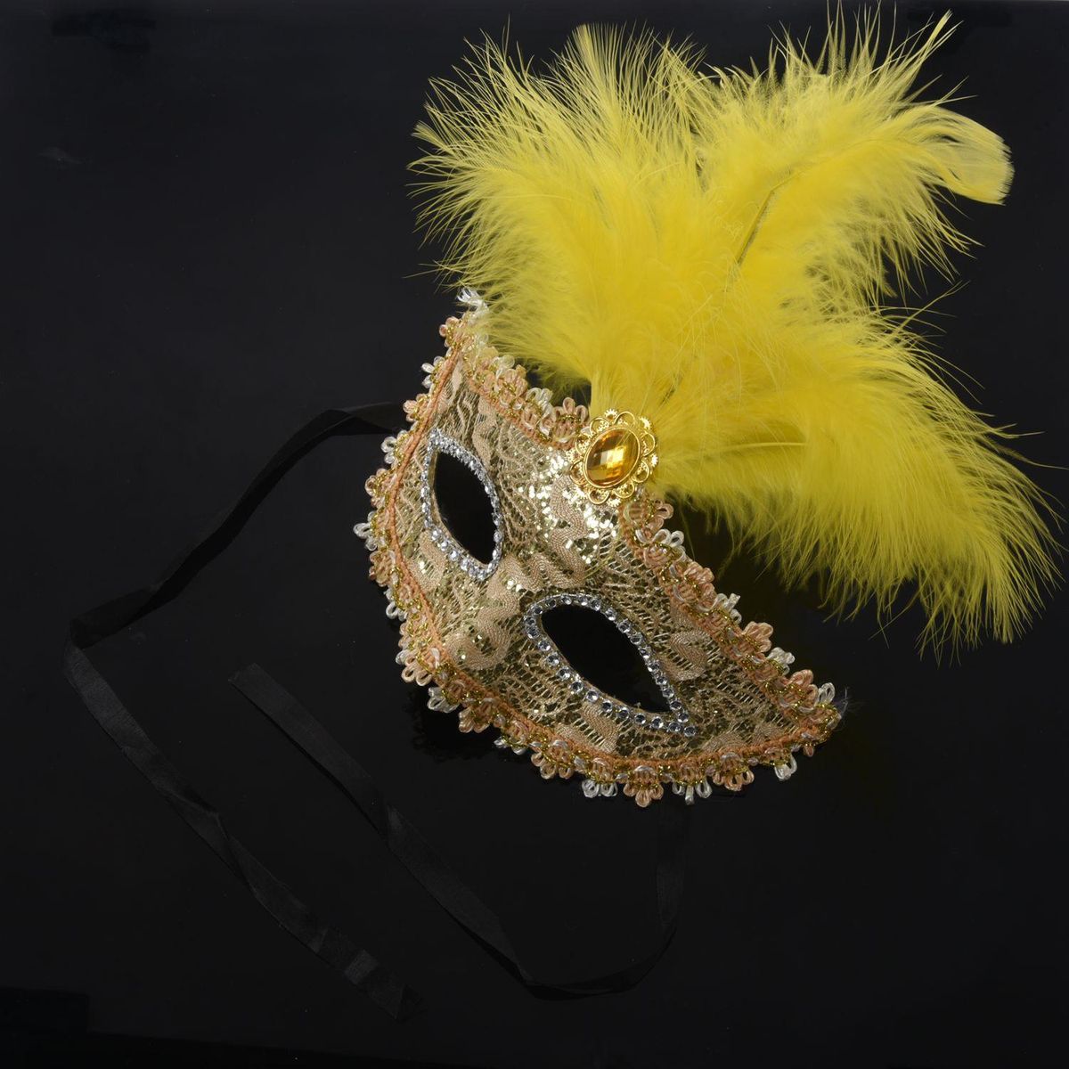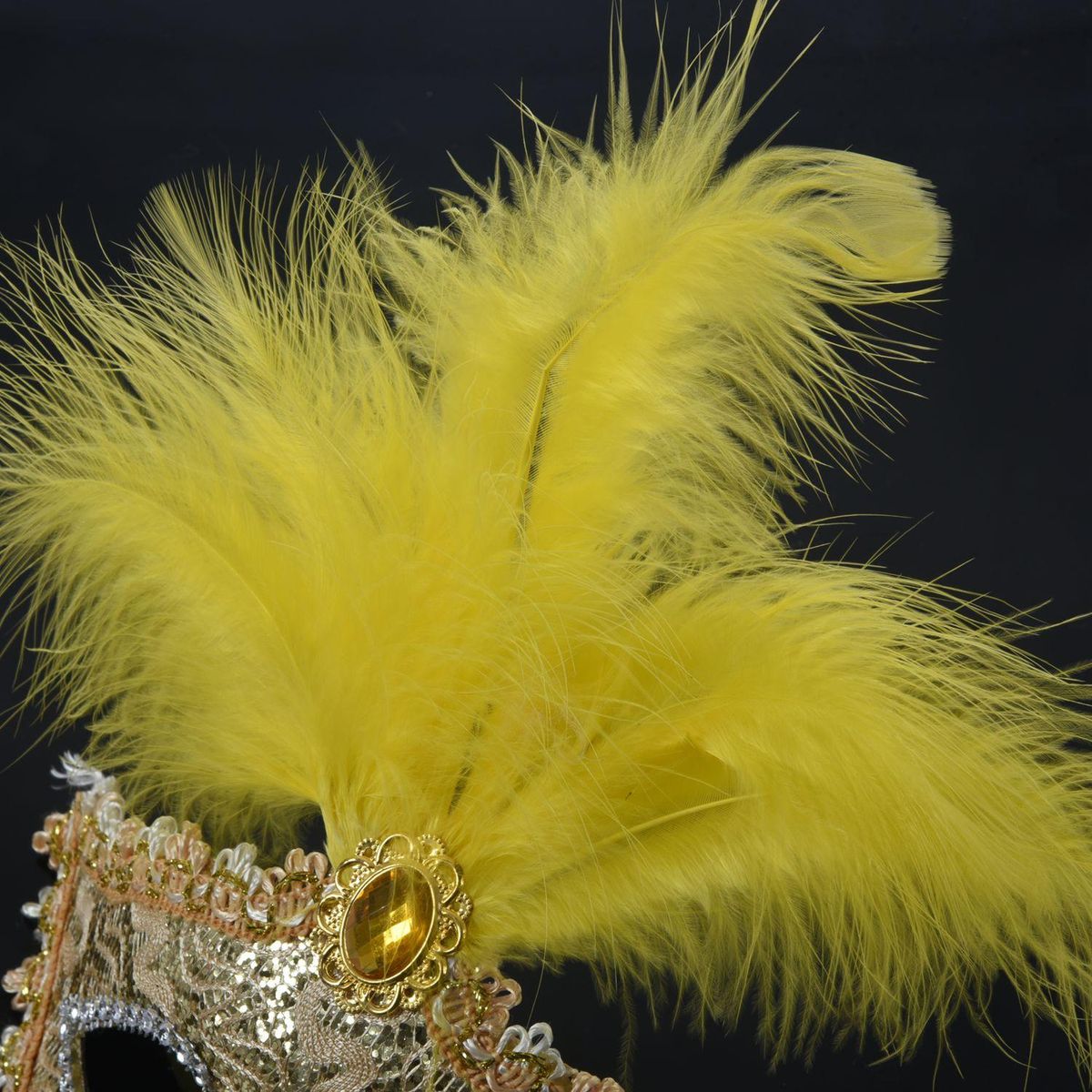 Mask Mask with Feathers Venetian Style White Gold XUse the holographic cutting technology, high-quality mask '