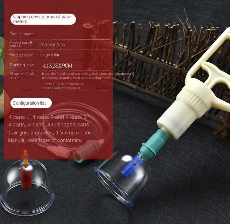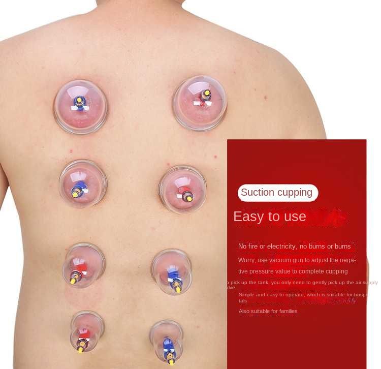 - Cupping is a kind of cupping method that uses cups as utensils to generate negative pressure by pumping air, making them adsorb on the body surface, causing local blood stasis, so as to achieve the effects of dredging the meridians, promoting blood circulation and removing blood stasis. Traditional Chinese medicine therapy such as dredging collaterals, promoting qi and blood circulation, reducing swelling and relieving pain, expelling wind and cold.