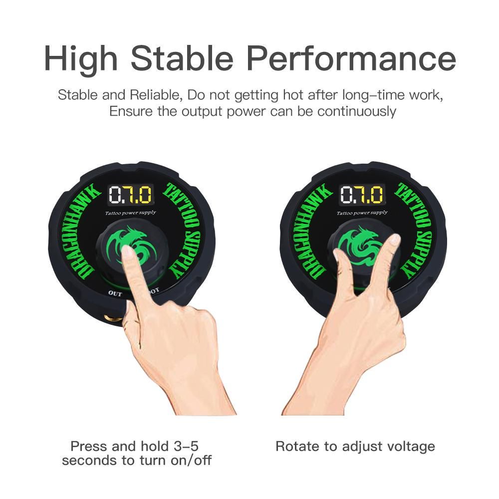 Mast Nano Tattoo pen weight has 82g, design by Coreless Motor ,speed 8V/9000Rpm strong power motor, light sound, smooth, soft, and quiet operation,most suitable for precise liner work, black and grey shading.New generation jack of clip cord it has powerful magnetic self-priming special design bring magical effect.This tattoo machine rotary can be compatible with most brands tattoo power supplies and tattoo cartridge needles.Note When you receive this power supply, should press the button 3 to 5 seconds to light on it . The power supply is advantageous for its switch mode technology, allowing for the efficient conversion of electrical energy, and the convenient adjustment of output voltage