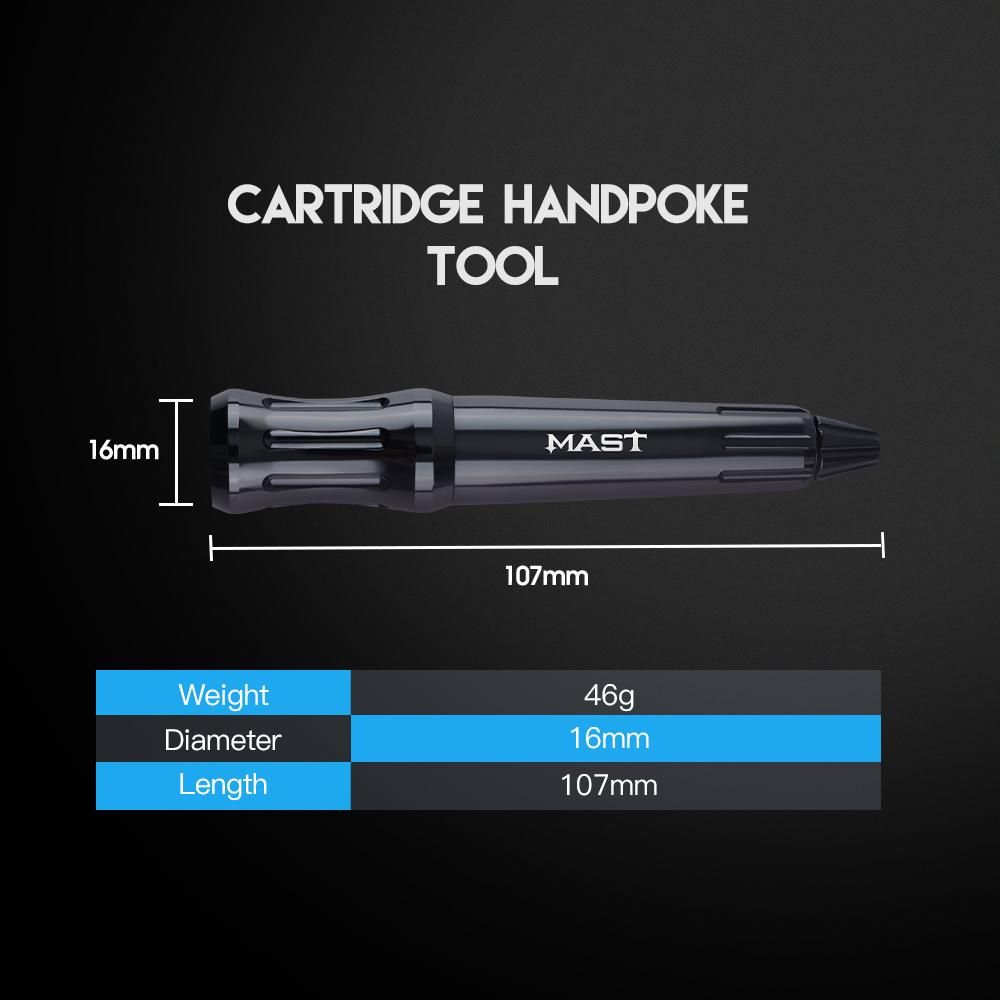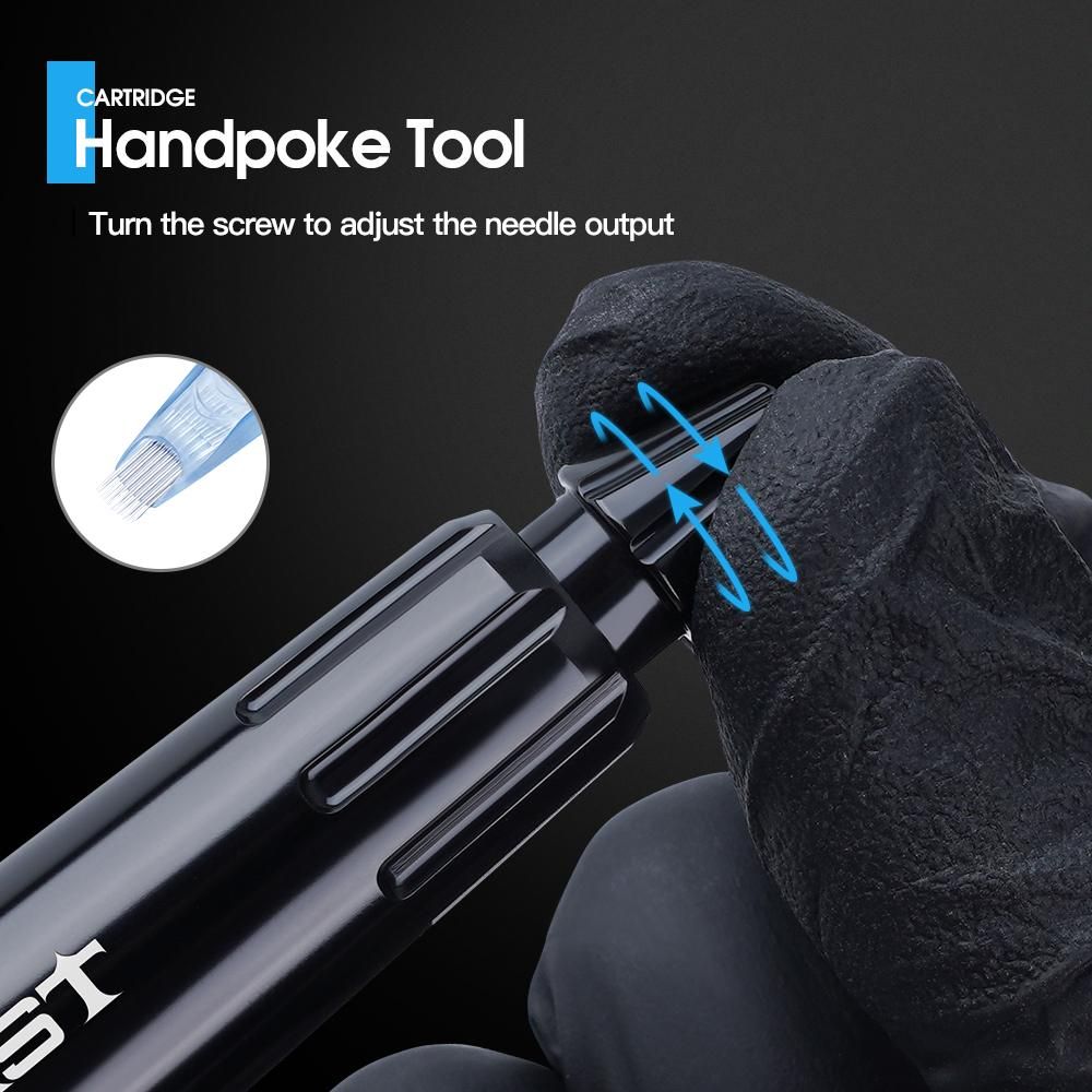 hand poke tattoo technique is an ancient technique that consists of pushing the ink directly into the skin with the cartridges needles.Stick poke pen features great ergonomics and balance and a great ability to adapt to the tastes of the tattoo artists.Turn the top of pen screw can adjust the cartridge needles deepth.The hand poke pen without motor,is non- electric .Is suit for small pattern.Length 107mm, Weight 46g, stick poke pen can work with all type cartridges needles.Hand poked pen work is safe and simple stick and poke works very well for small and simple designs.