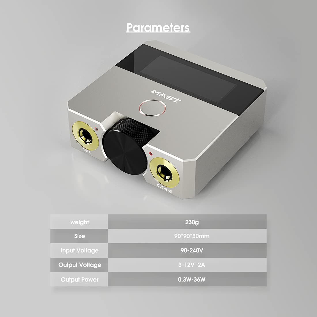 Mast tattoo power supply designed with dense, durable matte metal material housing, lightweight.