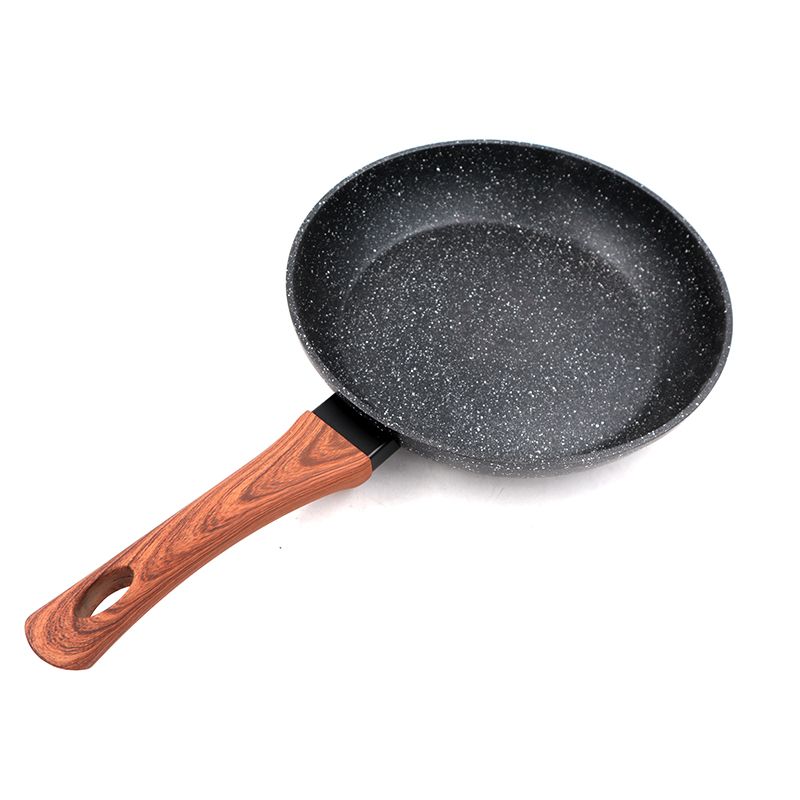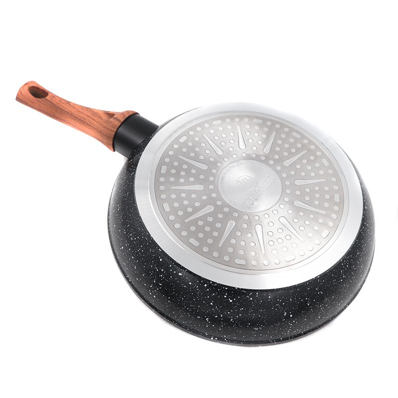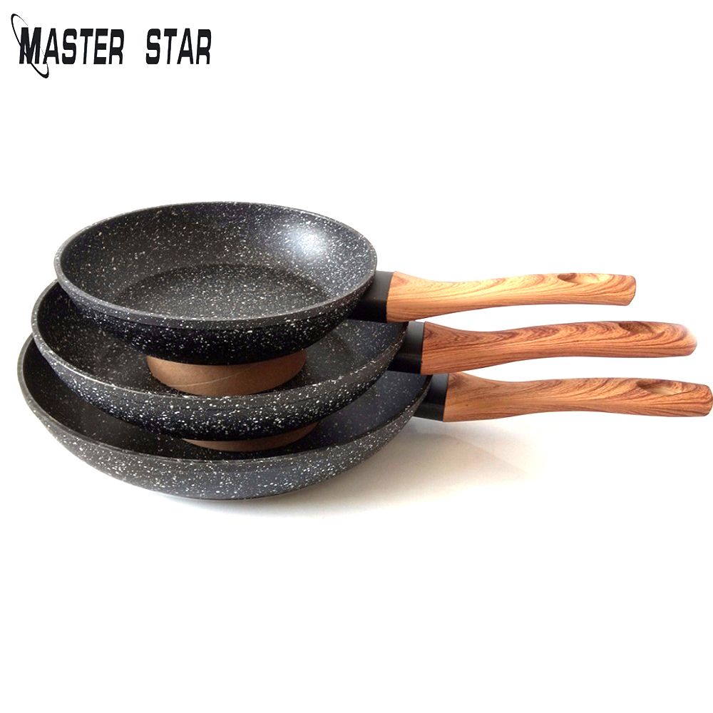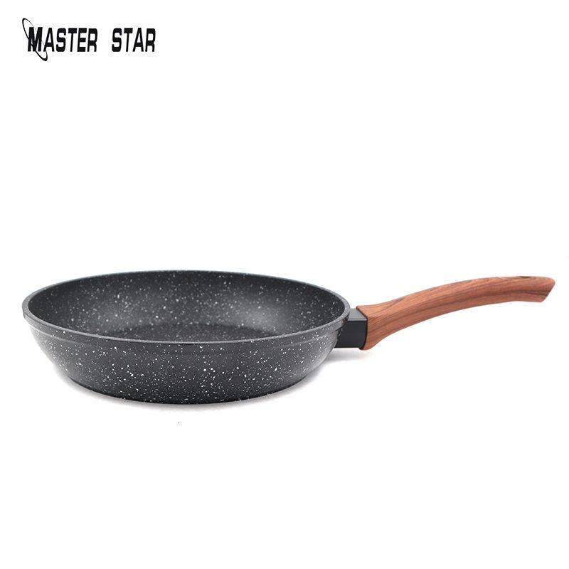 Master Star Non-Stick Frying Pan Black Granite Coating Pot Wooden Like Handle Marble Pancake Induction Cookware 20/24/28cm Set
