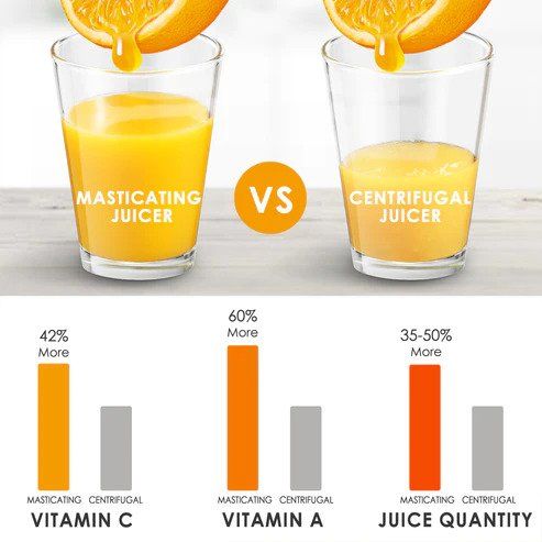 ✔HIGHEST JUICE YIELD - The pulp left by masticating juicer is much drier than the one extracted by a centrifugal juicer. This is an indication that the machine is able to extract all the fluids from fruits and vegetables being processed.
