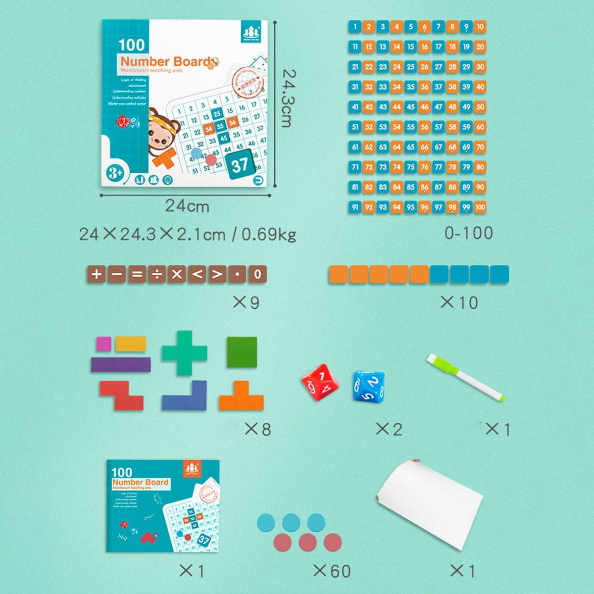 Number Board: This number board math toys(1~100 numbers) includes plus, minus, multiply, divide and equals signs puzzles learning.