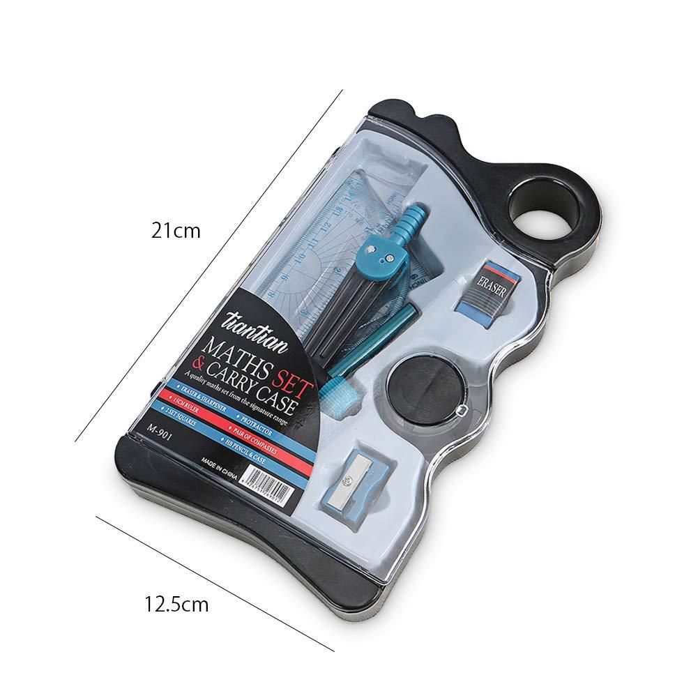 This 9pc Maths Set is great for kids going back to school and consists of 1 HB Pencil, 1 Pencil Eraser, 1 Pencil Sharpener, 1 15cm Ruler, 2 Set Squares, 1 Protractor and 1 Screw Adjustable Pair of Compasses.