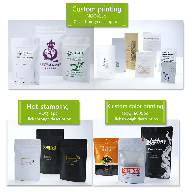 Resealable Zipper Bag:The zipper design can be used repeatedly, which is convenient for foods that are often eaten. Sealable with a hot iron or heat-sealing machine for long-term food storage. The standing type can simplify the storage of the cabinet.