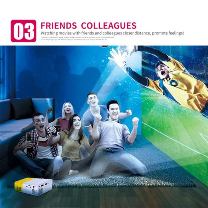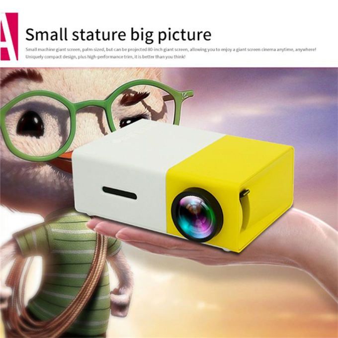 //////////////Parameter:Display Type: LCD Native Resolution: 480x272 Support Resolution: 1920x1080 Brightness: 400-800 Lumens Contrast Ratio: 800: 1 Projection ratio: 1.4: 1 Projection distance: 1.2-3 m Image Size: 20-80 inch Screen Scale: 4: 3 Interface: HDMI, USB, 3.5mm Audio, TF Card Slot Certificate: CE, ROHS, FCC Bulb: LED lightBluetooth: Unsupport Image formats: Bmp, png, jpeg Video formats: Mp4, rmvb, avi, rm, mkv, etc. Audio Formats: Mp3, wma, ogg, aac, flac, ape, wav AC adapter input: 100-240 v 50/60 hz 2.0A Power Supply: 12V-1.5A Built in Speaker: Yes Noise (db): 24 Compatible with: Sony PS4, Xbox Lamp Life: 30000 hours D VB-T Supported: No External Caption Supported: No 3D: No Tripod Height: Not Included Product weight: 0.2450 kg Package Weight: 0.5200 kg Product Size (W x H x H): 12.64x8.50x4.70 cm Package Size (L x W x H): 19.70x17.50x8.00 cm Package Contents: Package Contains: YG300 projector host + power adapter + remote control + three-in-one AV line + English manual"//////////////Tips:Add the product to your wish list, follow Pearroc store, after purchase, we will give priority to delivery processing.Due to the different reasons of various display screens, the product will have a little color difference, but don't worry, the product is perfect.The product is transported by air, and the high air pressure causes the battery power to drop. It is recommended to fully charge the product after receiving the product.The use steps are explained in detail in the product manual.For more surprise gifts/shop rebates/massive gifts, please pay attention to Pearroc store.In order to better help others understand this product, please share your experience in the evaluation. Pearroc store will extract excellent evaluations from it every month and give a 100Watts solar panel as a gift.