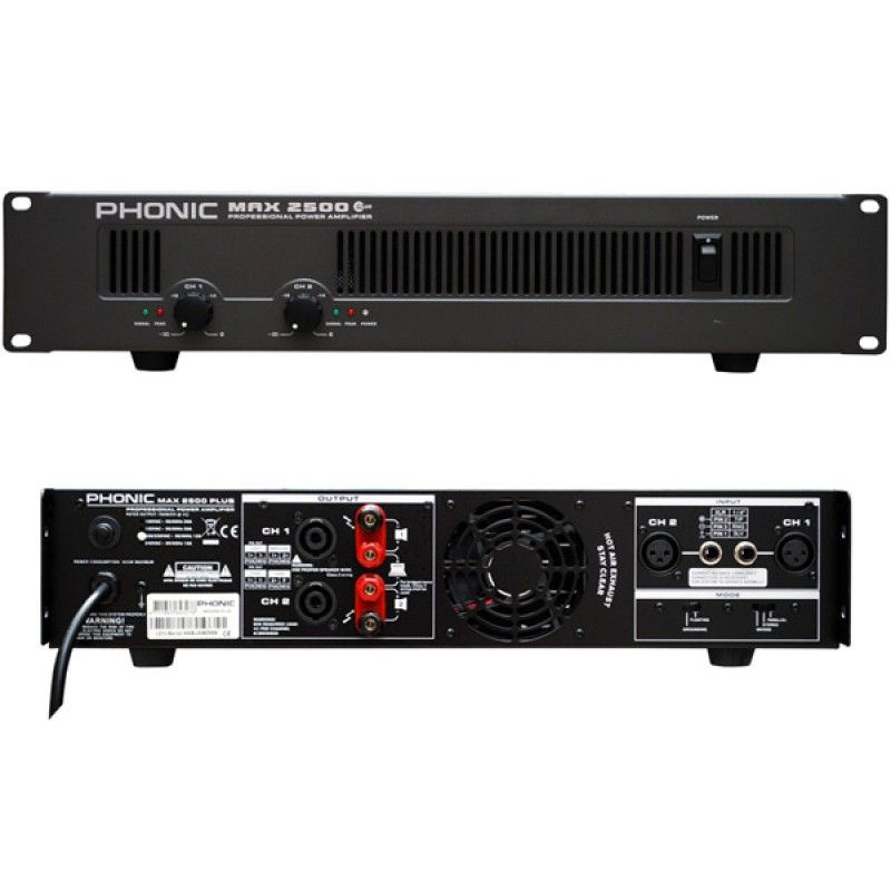 Phonic's MAX 2500 Plus Power Amplifier provides 500 Watts of power at 8 ohms (bridge mono) or 750 Watts at 4 ohms (stereo) - ideal for medium to large-size clubs, churches, auditoriums and more. Input to the MAX 2500 Plus amp is achieved via balanced XLR or phone jack, and output is achieved through either Speakon-type connectors or binding posts. The MAX 2500 Plus features ground switches, and the option to choose between stereo, parallel and bridge operating modes, making this amplifier ideal for real world application.