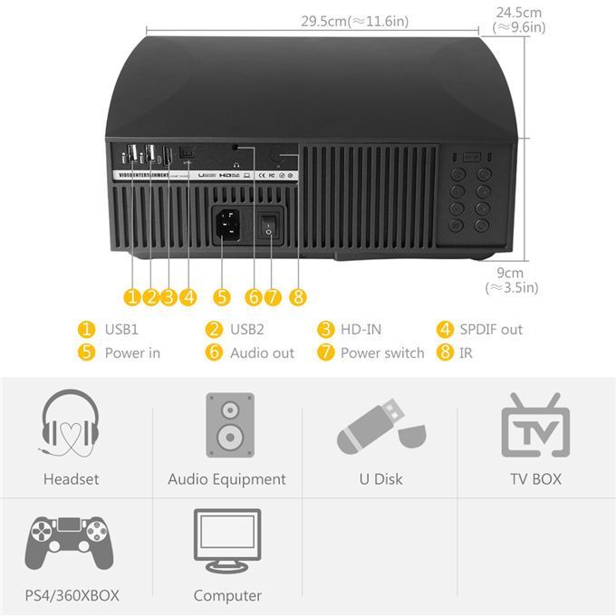1. Connect PC/Laptop/ Android TV Box via HDMI 2.Connect Chrome Cast/Fire Stick via HDMI or USB ports3. Connect for PS3 PS4 or X-Box ONE Wii via HDMI cable to enjoy games on so big screen!"//////////////Tips:Add the product to your wish list, follow Pearroc store, after purchase, we will give priority to delivery processing.Due to the different reasons of various display screens, the product will have a little color difference, but don't worry, the product is perfect.The product is transported by air, and the high air pressure causes the battery power to drop. It is recommended to fully charge the product after receiving the product.The use steps are explained in detail in the product manual.For more surprise gifts/shop rebates/massive gifts, please pay attention to Pearroc store.In order to better help others understand this product, please share your experience in the evaluation. Pearroc store will extract excellent evaluations from it every month and give a 100Watts solar panel as a gift.