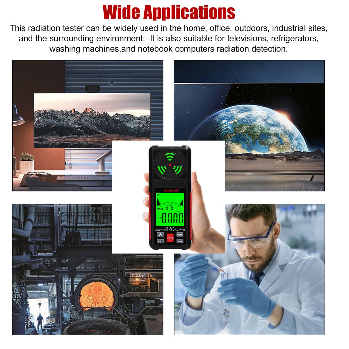 Wide Applications: This radiation tester can be widely used in the home, office, outdoors, industrial sites, and the surrounding environment; It is also suitable for televisions, refrigerators, washing machines,and notebook computers radiation detection.