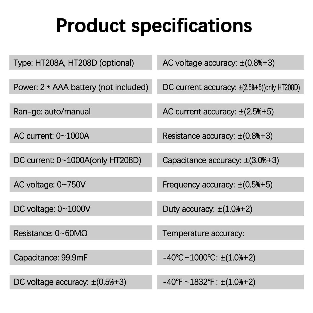 Buy MAYILON HT208A/HT208D (Optional) Clamp Meter Multimeter AC Direct Current Voltage Current Temperature Diode Continuity NCV Test Multifunctional Multimeter in Nigeria