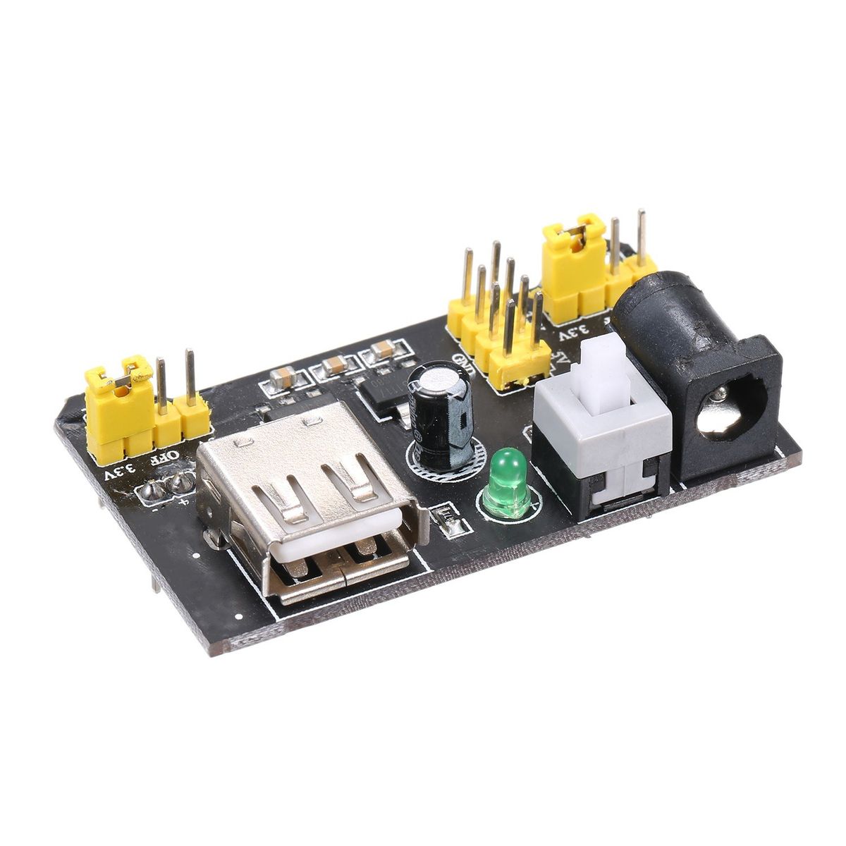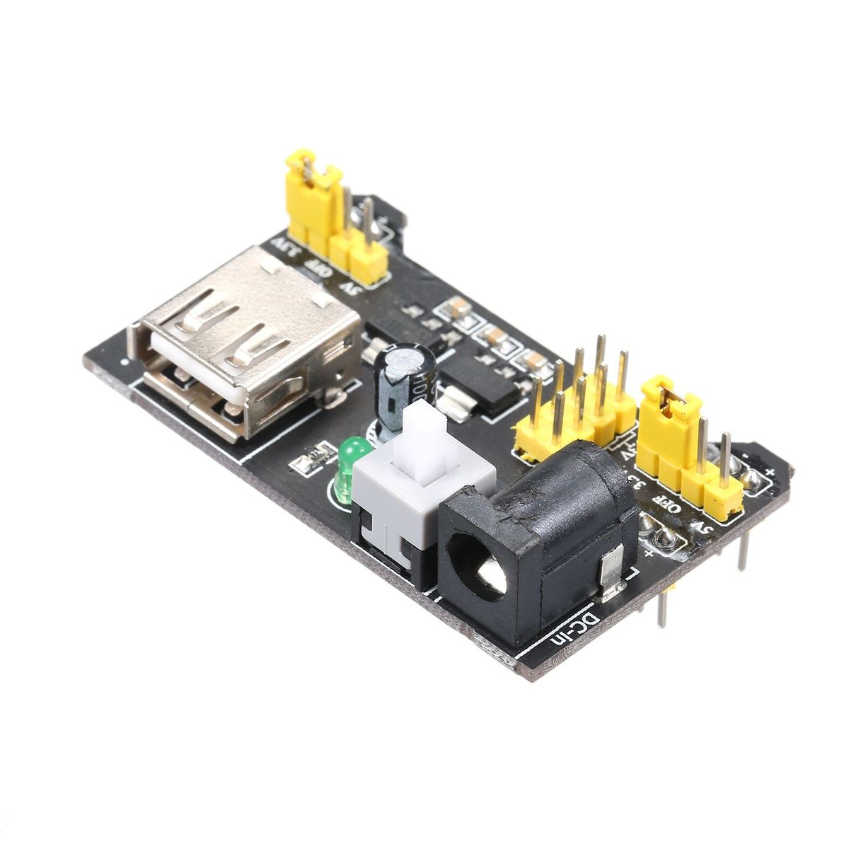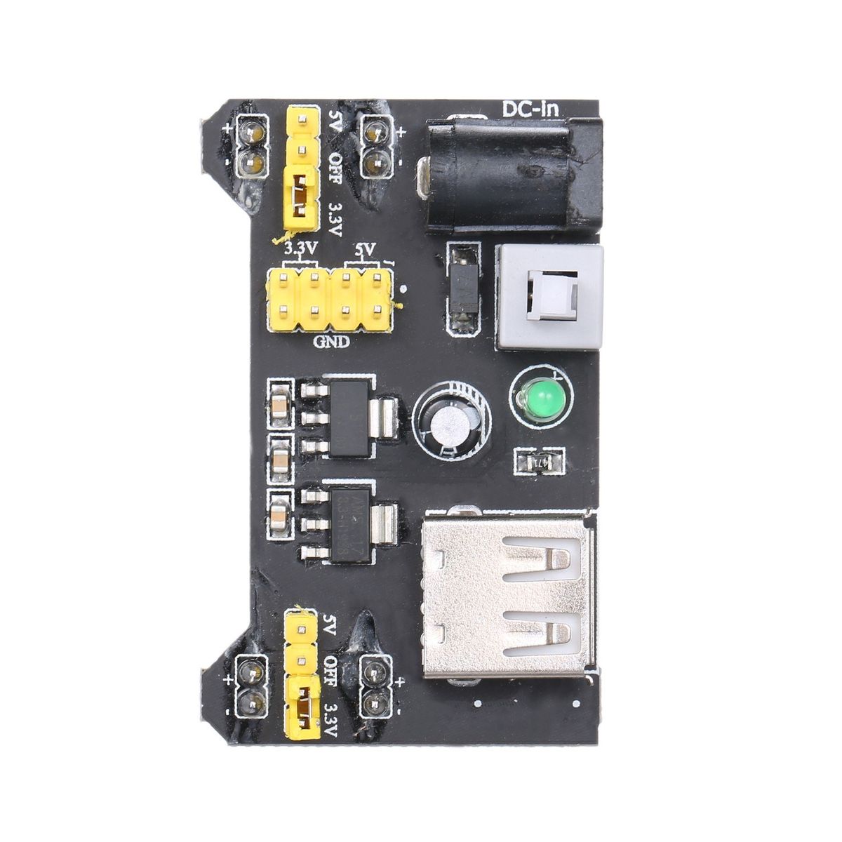 Two sets of 3.3V and 5V DC output pins on board.