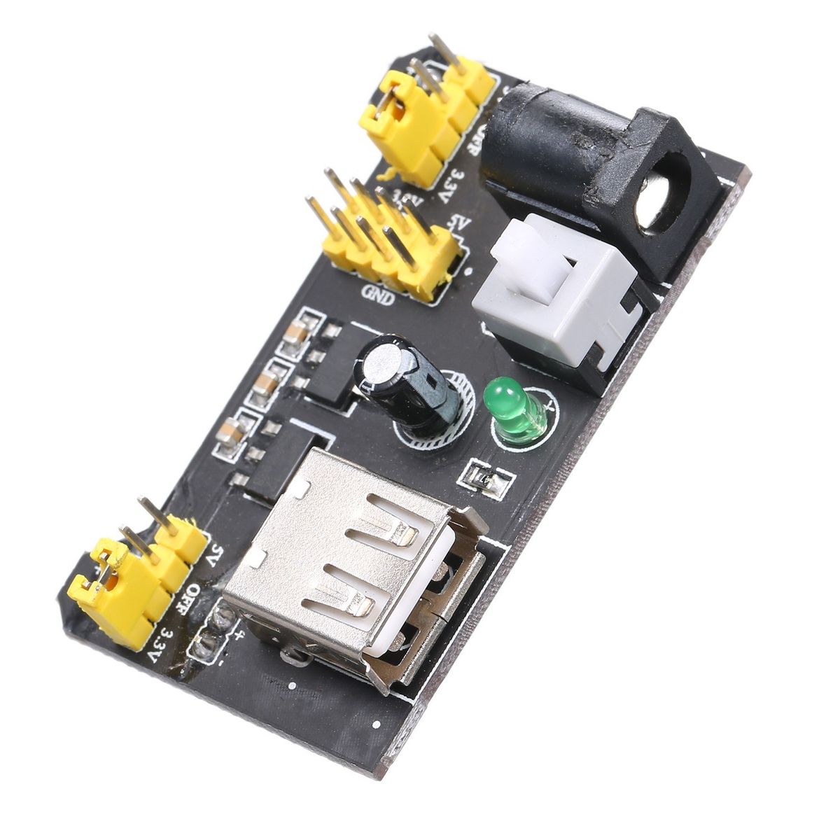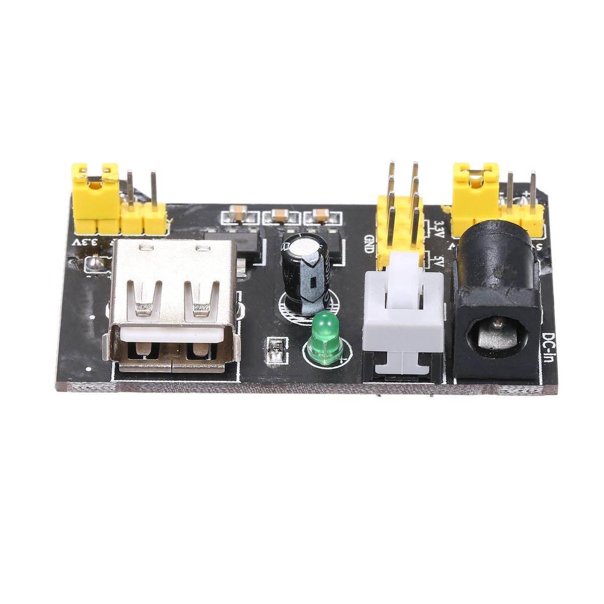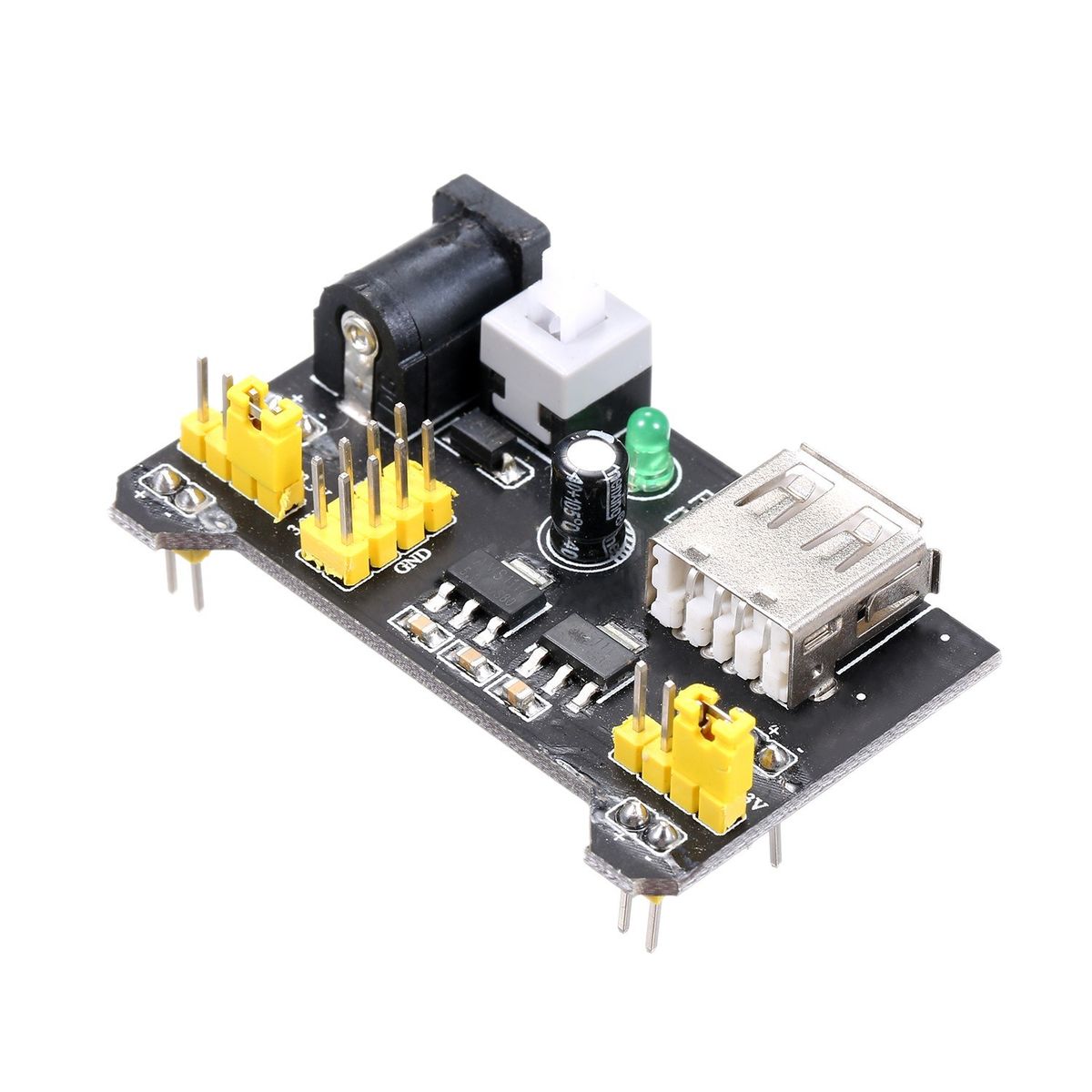 Two sets of 3.3V and 5V DC output pins on board.