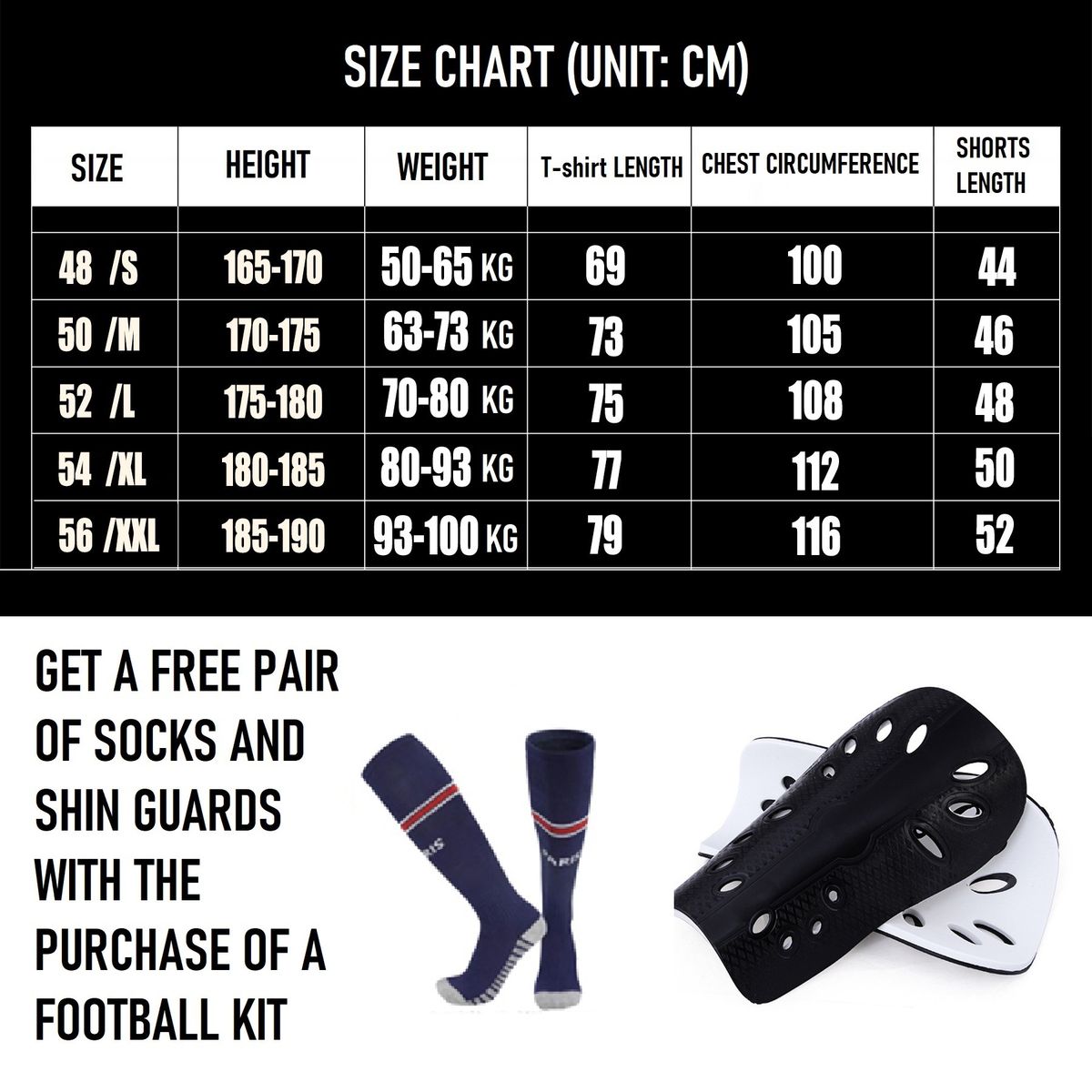 The jersey set includes1 shirt1 shorts1 pair of socks1 pair of kneepads