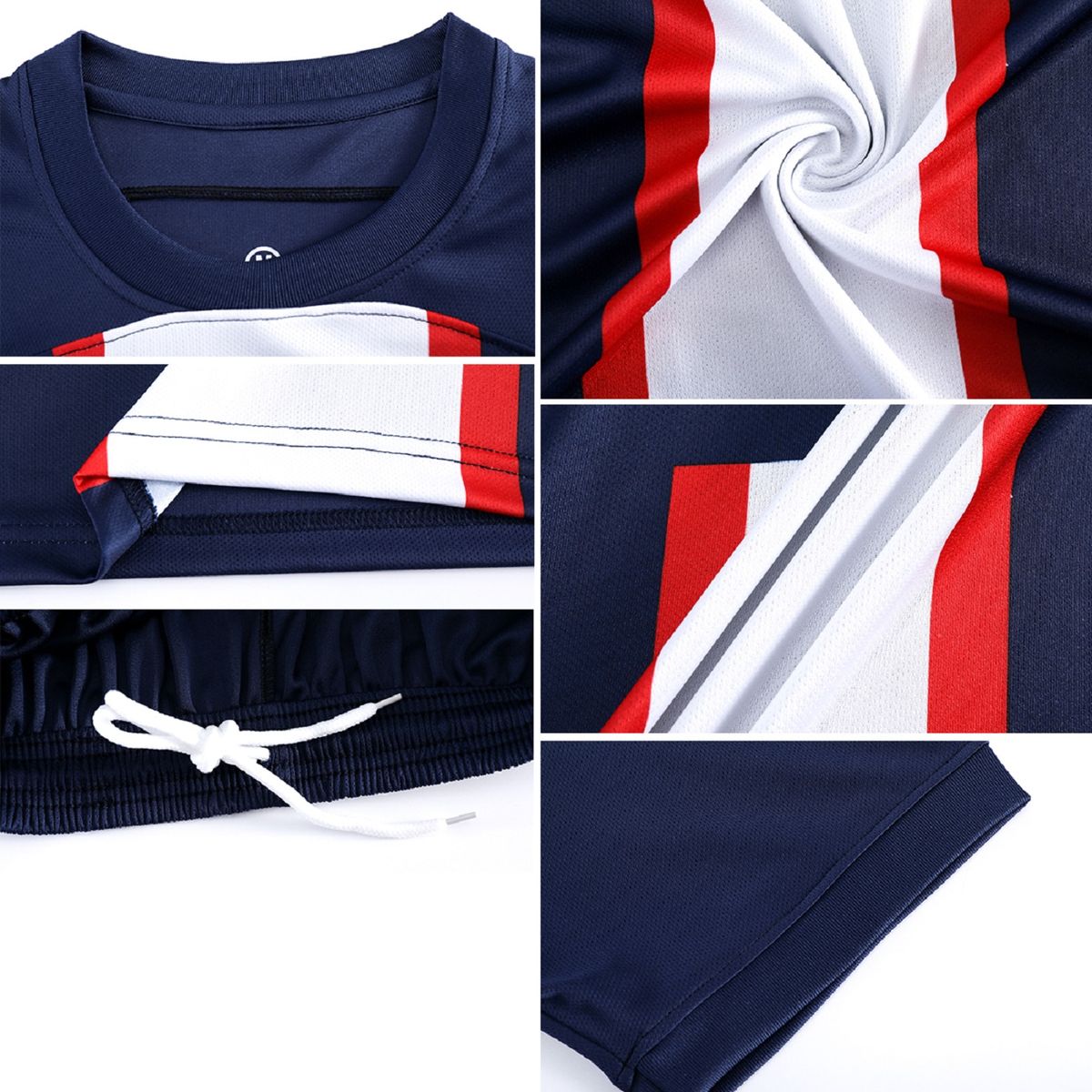 Kylian Mbappe, who played for Paris Saint-Germain and the French national team. The tracksuit consists of comfortable shorts and a T-shirt sweatshirt. Versatile and suitable for youngsters and adults from 165-190cm in height, football jerseys are stretchy, breathable, hard-wearing, hypoallergenic and soft. The free-cutting football jersey does not restrict movement. The material absorbs and transfers moisture, regulates heat exchange and provides perfect ventilation. Made from high-tech polyester, this jersey will make a great gift for young players! Suitable for everyday wear, sports, leisure, festivals and other occasions.