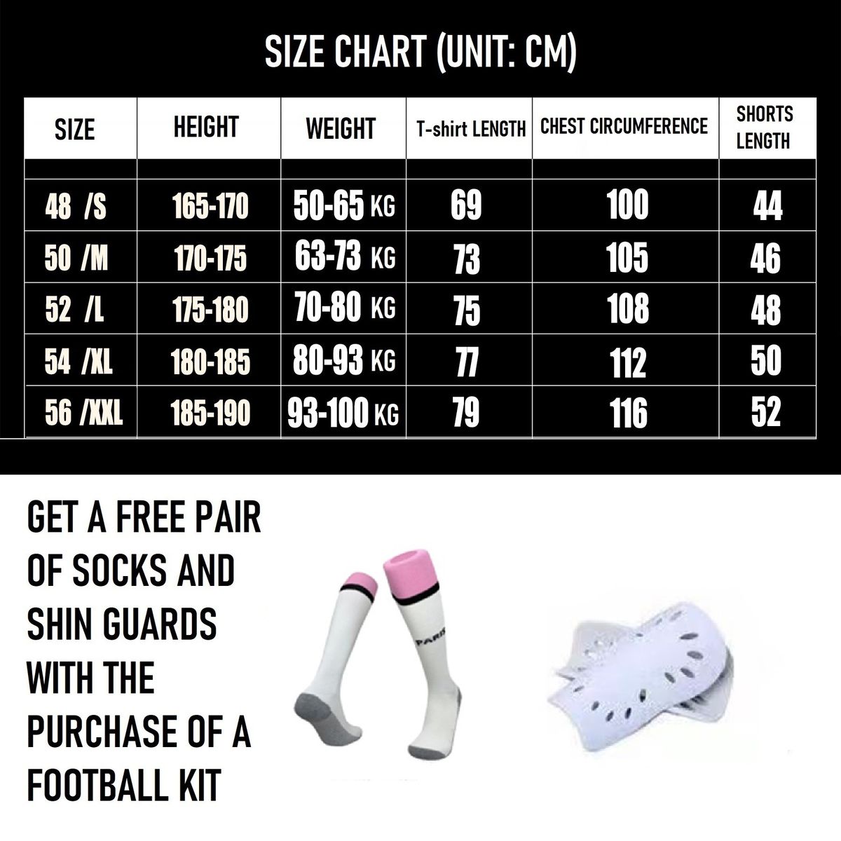 The jersey set includes1 shirt1 shorts1 pair of socks1 pair of kneepads