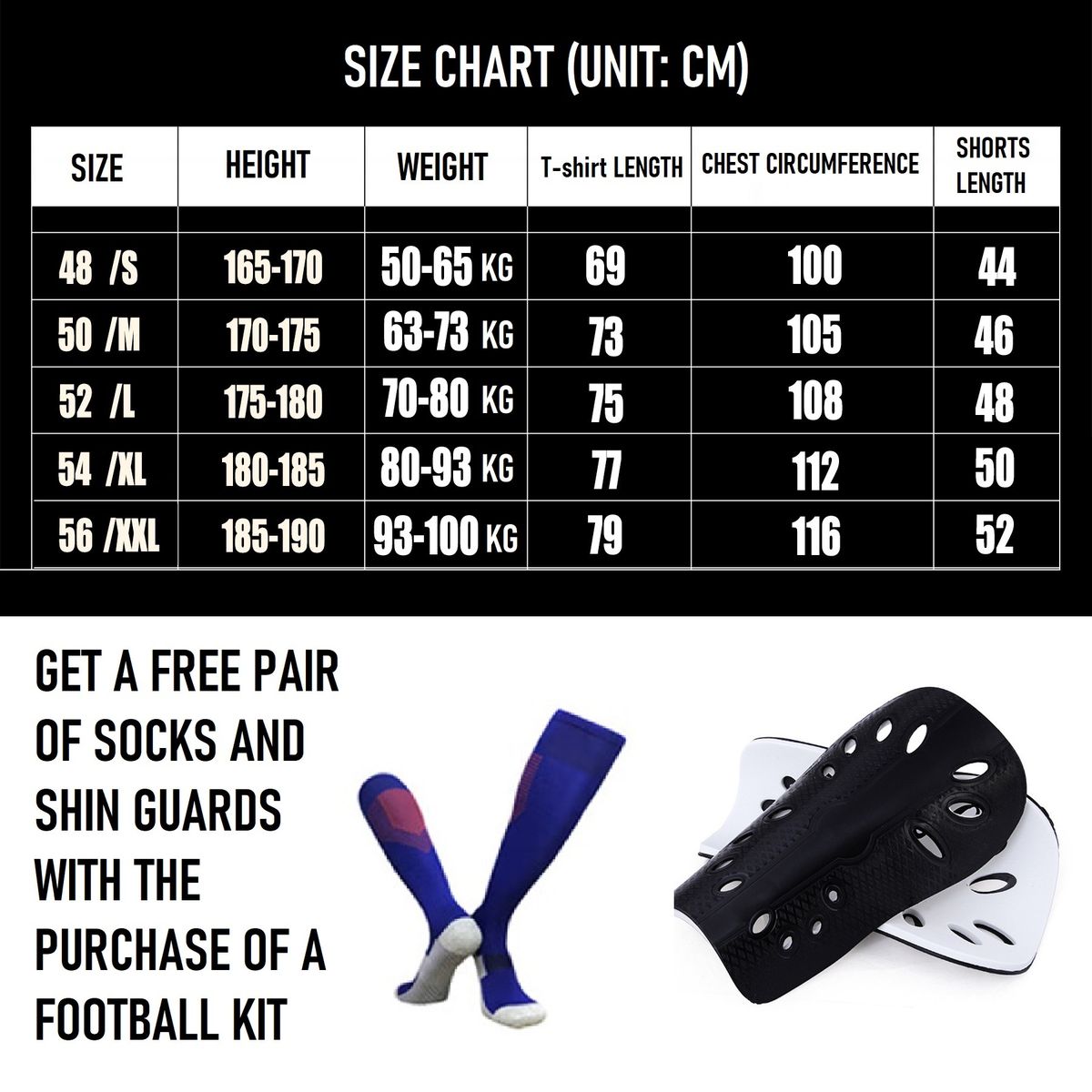 The jersey set includes1 shirt1 shorts1 pair of socks1 pair of kneepads