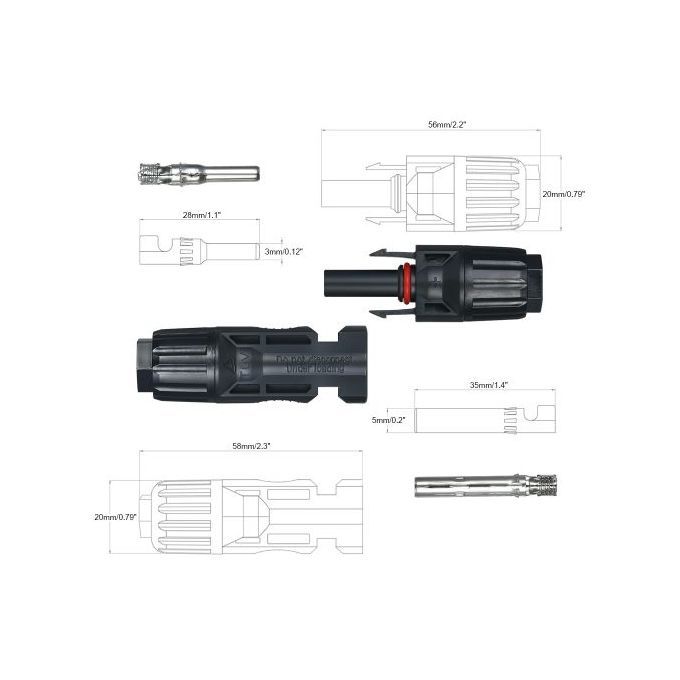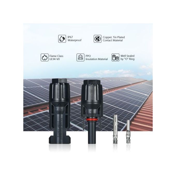 These are MC4 style connectors which are used to connect multiple solar panels or groups of solar panels together in a solar field, and typically used in parallel applications. The included MC4 assembly tool makes it easier for users to quickly and easily tighten and separate the connectors.