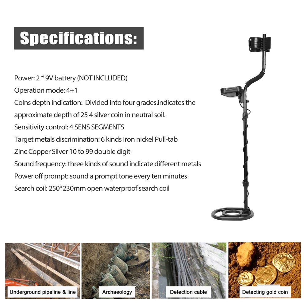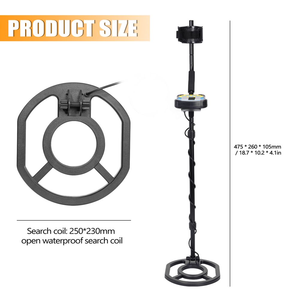 Waterproof Search Coil: This metal detector with a 250*230mm large waterproof search coil, so you can use this metal detector to explore underwater, perfect for detecting on the beach or in the stream, but the control box can not be put in the water.