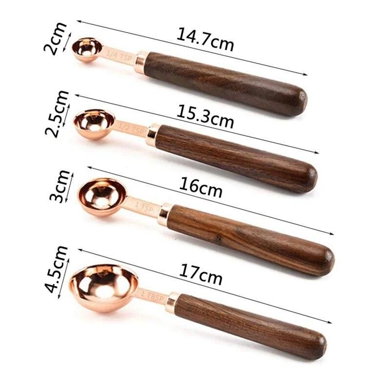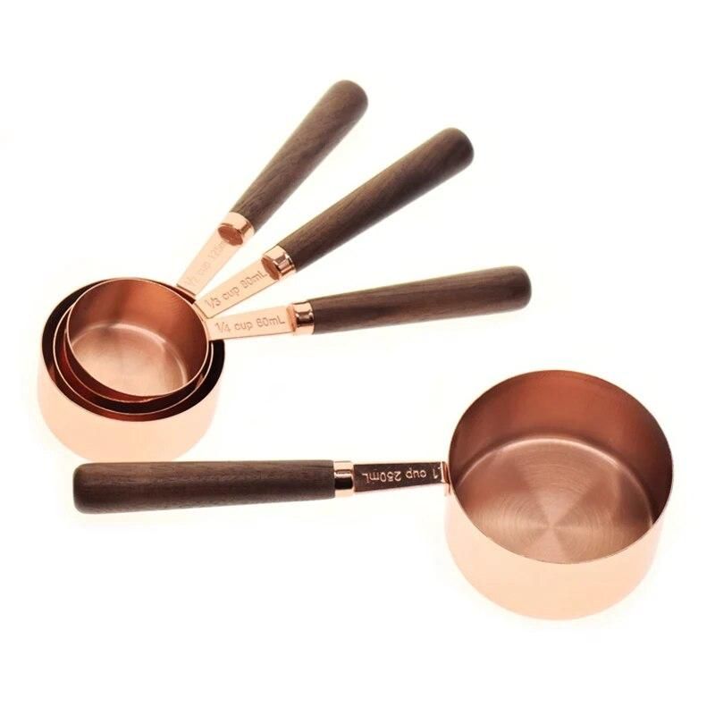 Buy Measuring Cups Spoons Set Wood Handle Stainless Steel Plated Copper Metal Measuring Scoop Baking Kit Kitchen Accessories in Nigeria