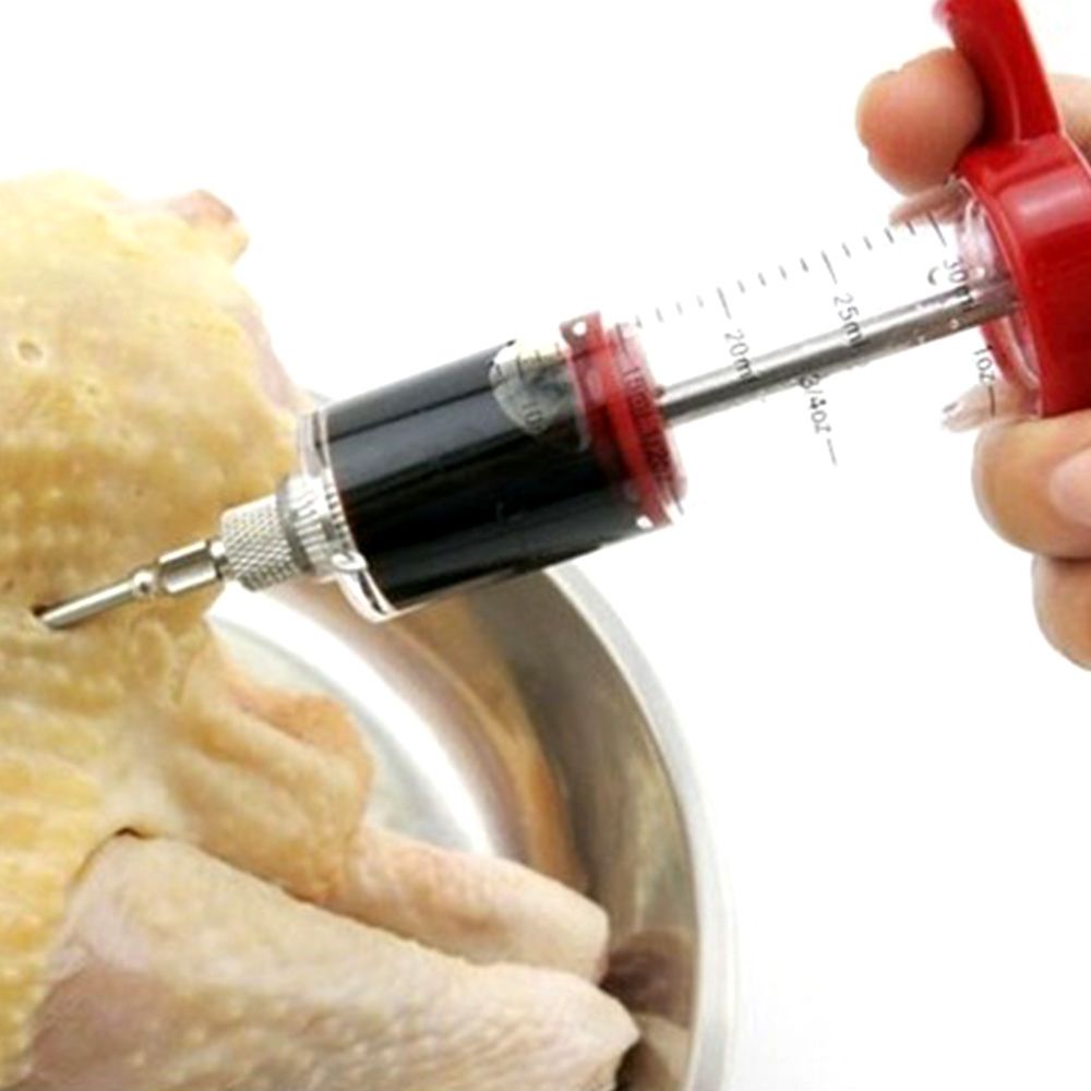 The meat syringe can inject the sauce into meat such as chicken for added flavor, it is a good tool when you grill steak, beef, pork, lamb, chicken, goose, duck.