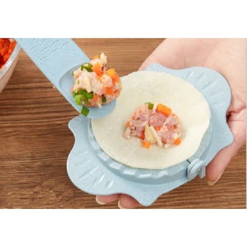 5. Deliver the filling spoon, put the filling and dumpling skin into the Mould, and press the Mould to form