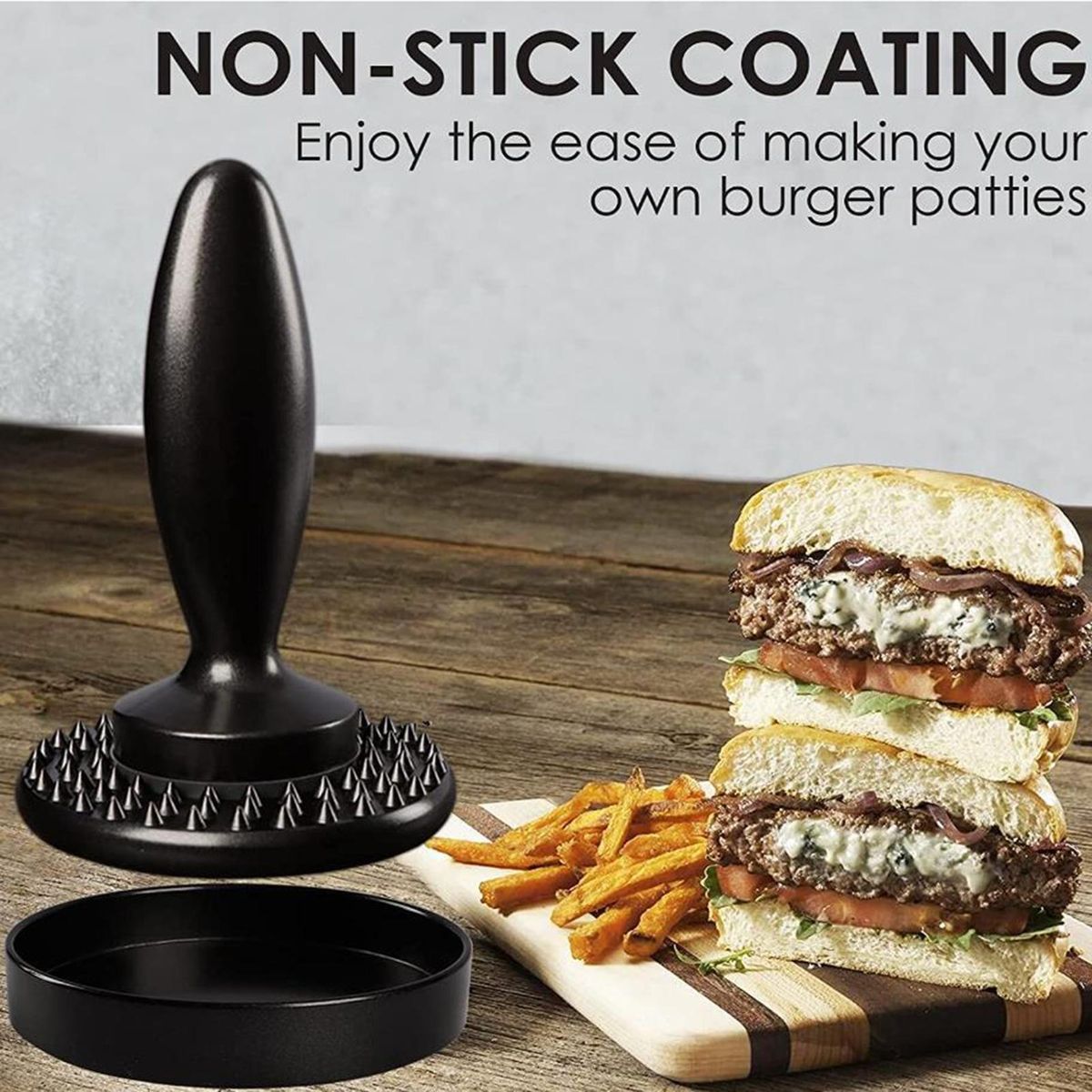 But wait, there's more! our non-stick burger press takes your culinary skills to the next level. say goodbye to misshapen patties this press guarantees perfectly shaped burgers every time. the included metal base adds a touch of elegance to your presentation, impressing your guests with your cooking prowess.