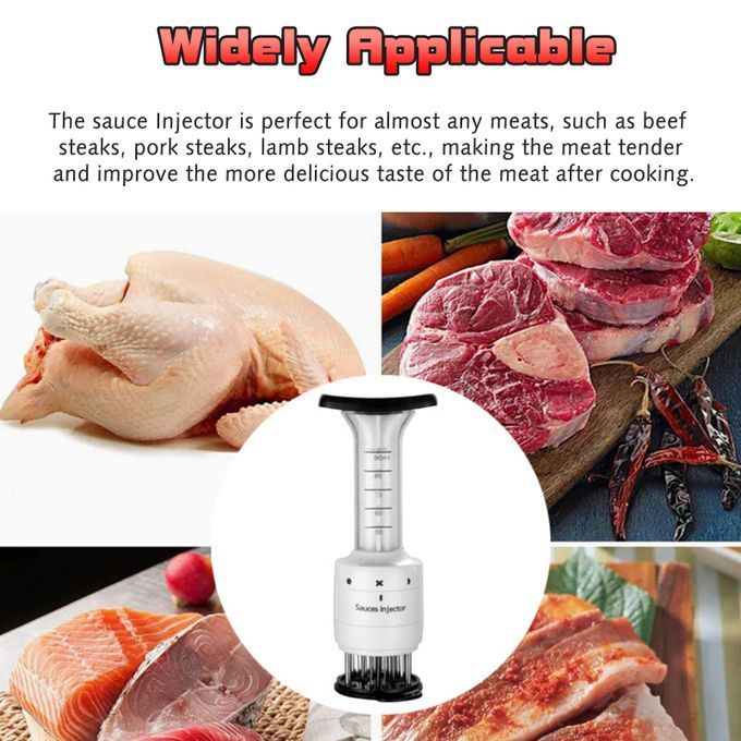 ?Inject Sauce & Tenderize Meat: The meat sauce allows you to tenderize and inject marinade into the meat at the same time, increasing cooking efficiency and providing a deeper level of flavor.