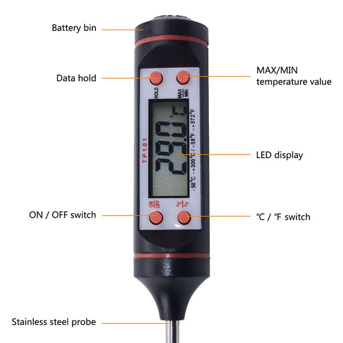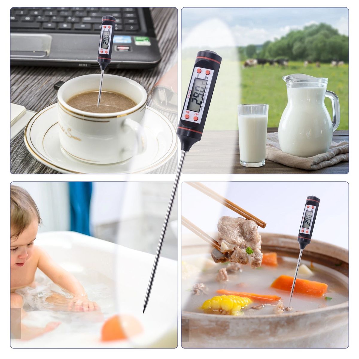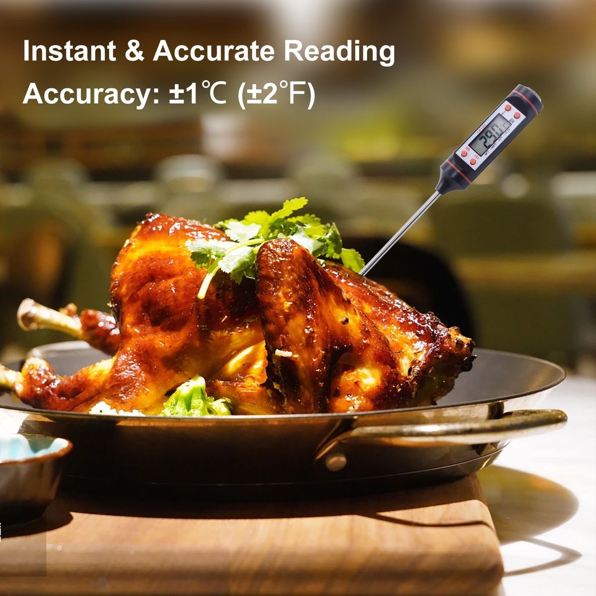 【Food-grade Material】Made of food-grade ABS and stainless steel materials, this food thermometer with great durability and stability, can directly contact with food.
