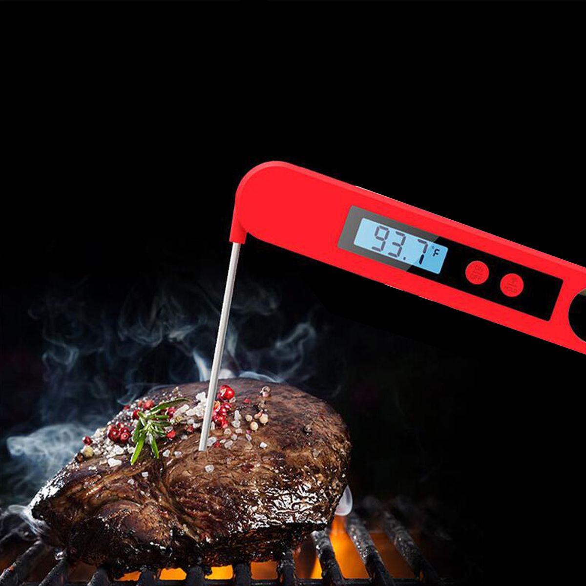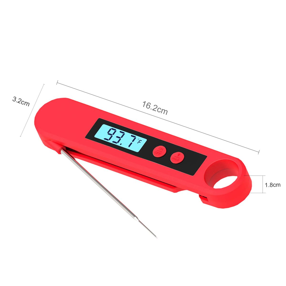 Foldable amp;Long Probe: The equipped food-grade stainless steel probe with tip design is able to get temperature more precisely and quickly, non-toxic and safe. The probe is foldable, making the thermometer easy to carry and store.