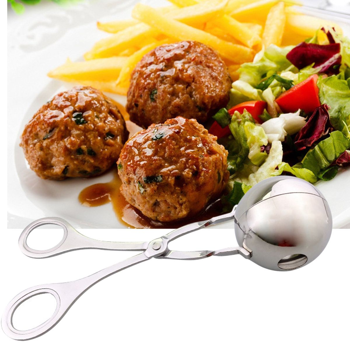 This meatball scoop maker is made from food grade 304 stainless steel, high strength, high-temperature resistance, healthier and more durable. It\\\'s convenient and comfortable for use in the kitchen. perfect for meat baller tongs, melon baller, salad, BBQ, cookies, cake, ice cream, rice ball maker, scoop clip, etc.