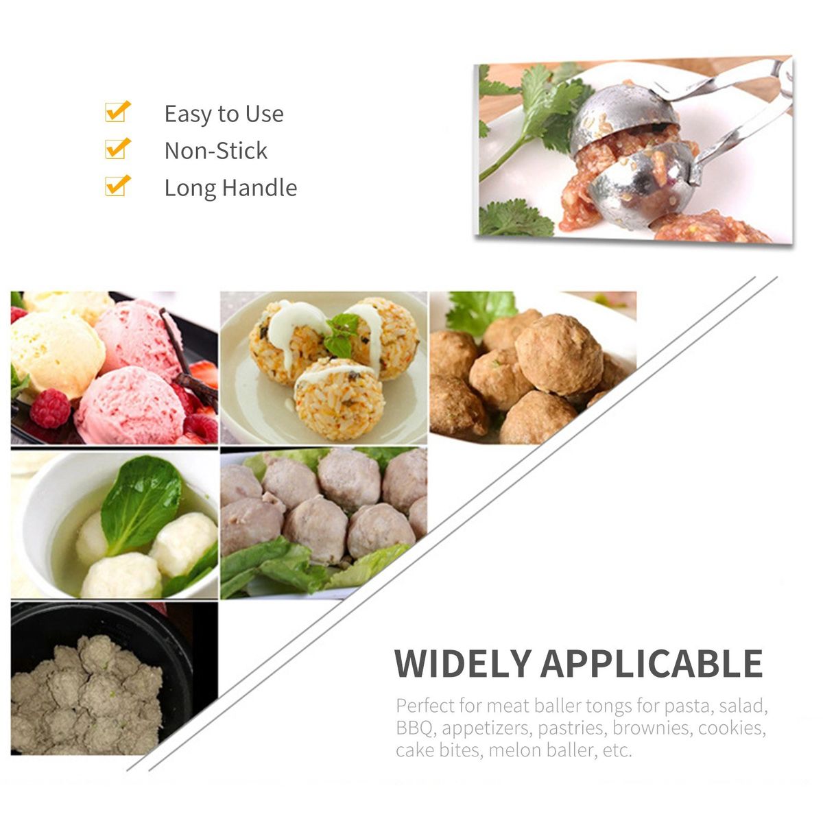 [Widely Applicable]Perfect for meat baller tongs for pasta, salad, BBQ, appetizers, pastries, brownies, cookies, cake bites, melon baller, etc.