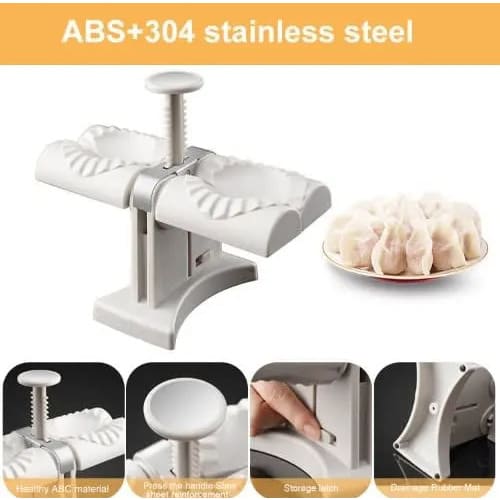 Dumpling Maker - Wrap Two at A Time, Double Head Automatic Dumpling Maker Pastry Tool, Best Utensils Ravioli Dumpling Maker Wrapper Press Mold, Kitchen AccessoriesFeature:Food Grade Material: Made of high-quality ABS+304 stainless steel, it is sturdy and durable, and the base anti-skid pad is stable. It is easy to use and clean, just rinse the flour with water.Making Dumplings: Are you still worried about making dumplings? You have to control the shape and strength of your hands every time you make dumplings, but each dumpling is different. With this dumpling machine, this problem can be perfectly solved, allowing you to quickly make more dumplings without the need for a lot of waiting for your family.Easy to operate: This new and upgraded dumpling machine can pack two at a time and make more dumplings quickly. Even if you are a beginner, this dumpling maker easily allows you to make beautiful wavy dumplings in a short time without any rush.How to use: 1. Open the side unlocking device of the dumpling machine; 2. Lay the dumpling skin and put the filling; 3. Press the handle down. 2 dumplings can be made and pressed at the same time.Enjoy DIY time: You can DIY dumplings with family and friends at home or at parties, while enhancing your child's hands-on ability, and it doesn't take long to make a lot, then enjoy the fun of making delicious handmade food by yourself, spend a happy time.