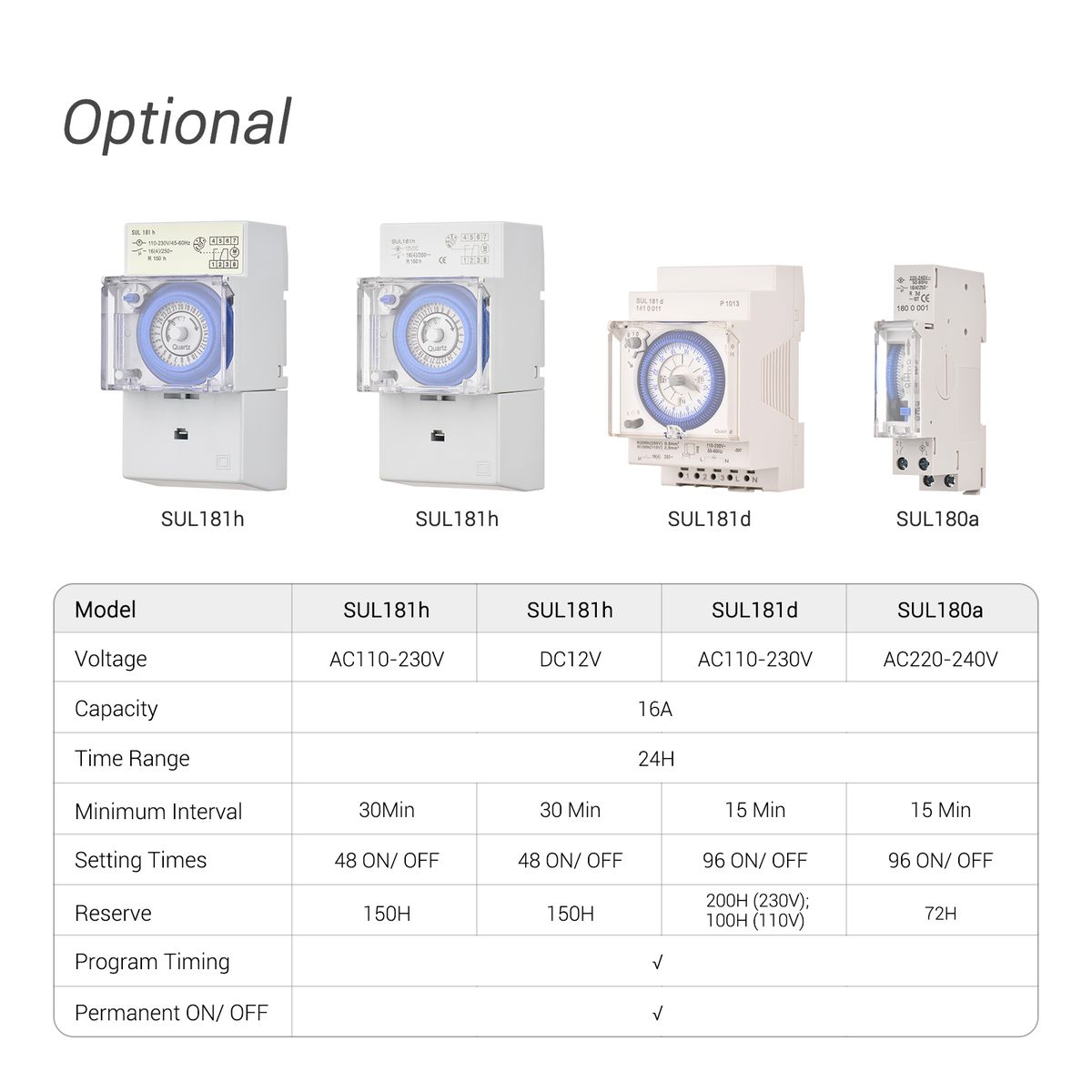 Model, Voltage: SUL181h, AC110-230V/SUL181h, DC12V/SUL181d, AC110-230V/SUL180a, AC220-240V (Optional)
