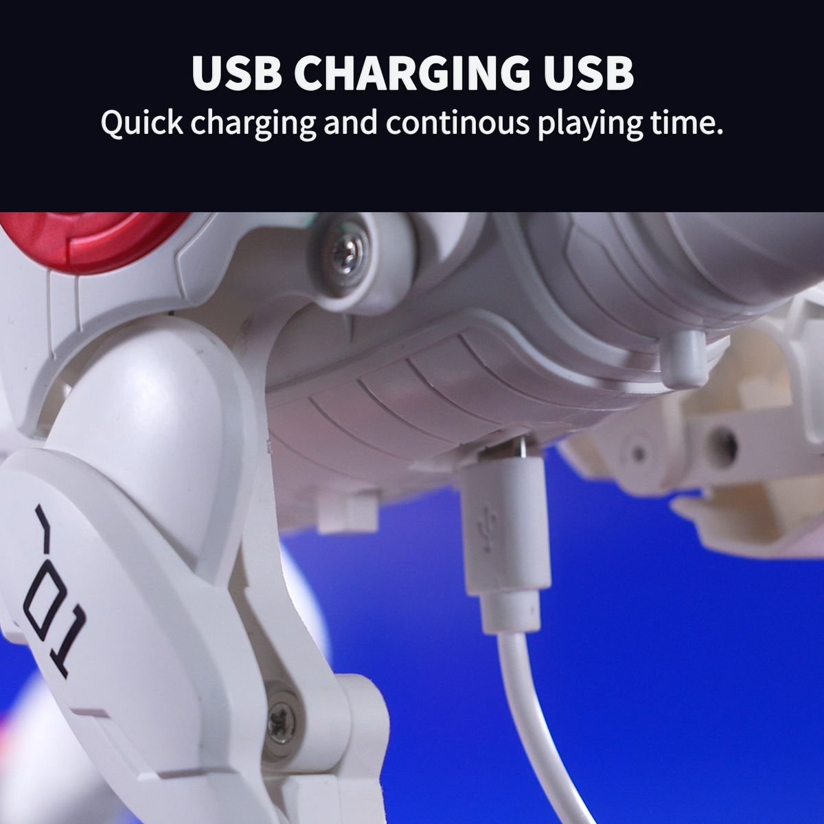 Function: 4 channel remote control simulation action including forward / backward, turn right / left, 2.4GHz wireless remote control, one-click automatic presentation, etc..