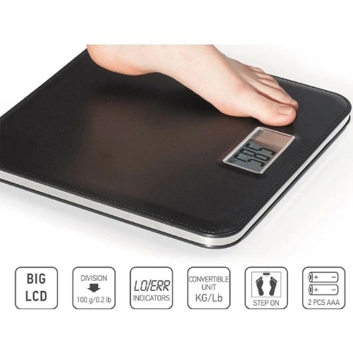 In an instant-step on the platform and receive accurate measurements in kilograms with "130 KG CAPACITY"