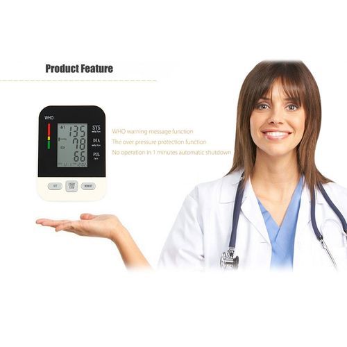 1. Automated measurement2. Storage memory 2* 99 group memory value parents each group. Display the last three average measurement.3. Query the memory data in sequence.4.LCD HD display:Display data clearly visible.5. The operation is automatically turned off for 1 minute without operation.6. Accuracy measure blood preure: simple fast and Accurate.7.English Voice playback Function8.Heart rate arrhythmia prompts effective darly warning of heart problems.9.Power:Built-in battery battery,Rechargeable10.Measurement Method: Pulse Scanning/ Oscilloscopic Measurement