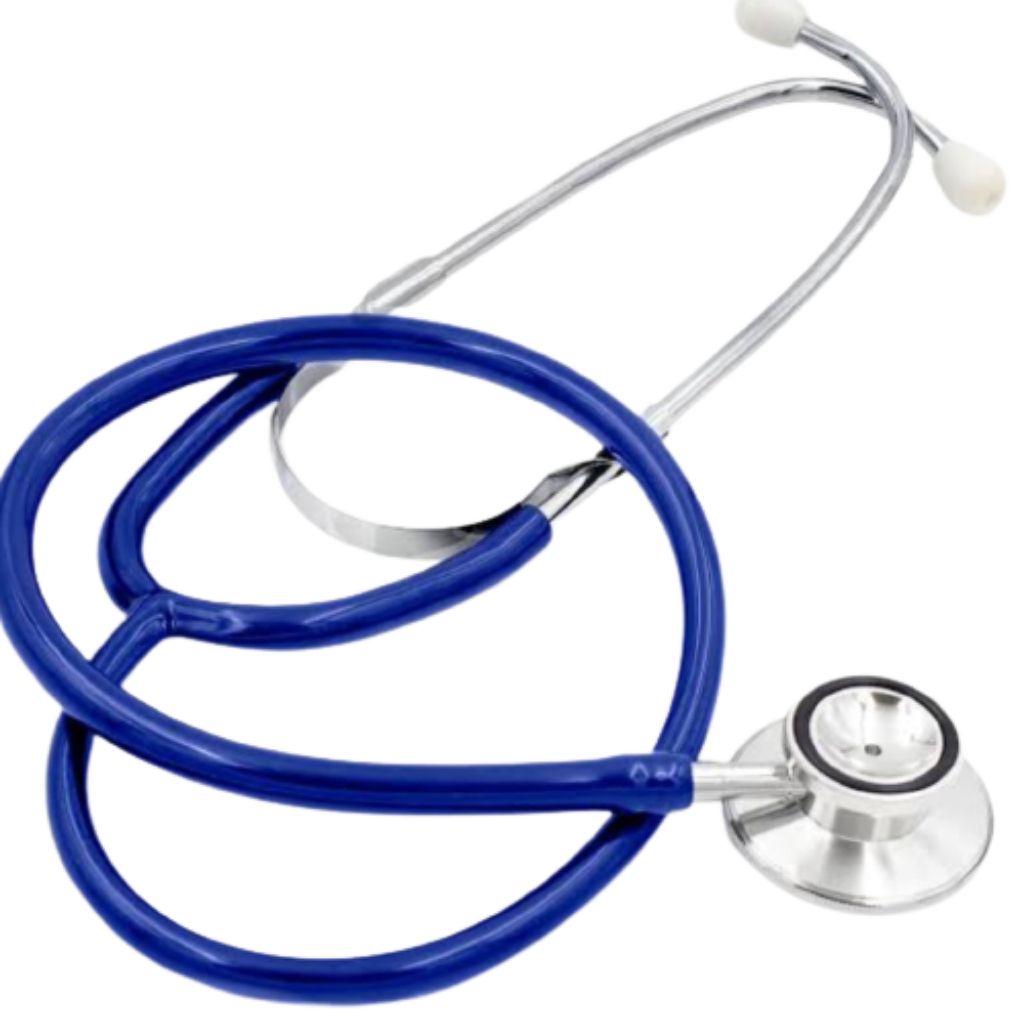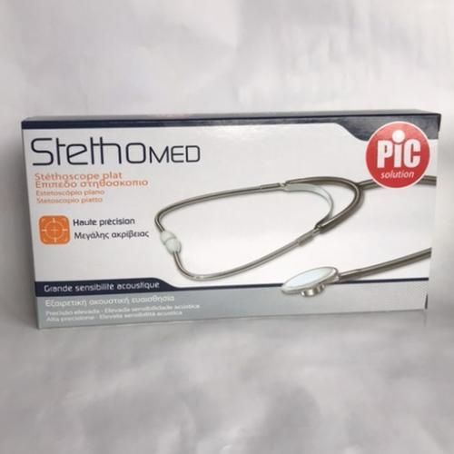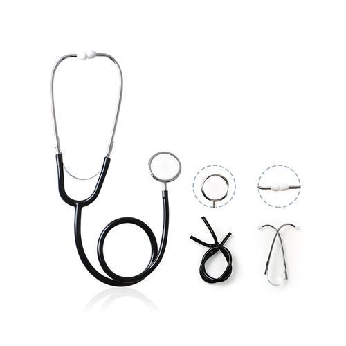 stethoscope is a medical device for listening to the internal sounds of an animal or human body. It typically has a small disc-shaped resonator that is placed against the chest, and two tubes connected to earpieces. It is often used to listen to lung and heart sounds. It is also used to listen to intestines and blood flow in artries and veins In combination with a sphygomanometer it is commonly used for measurements of blood pressure.