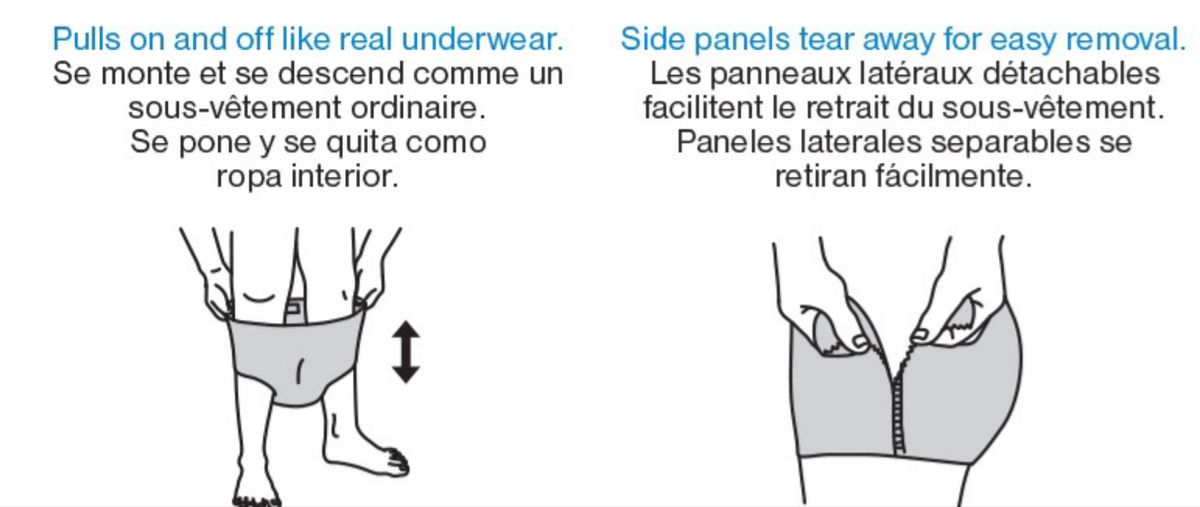 Underwear includes tear-away seams for convenient removal.