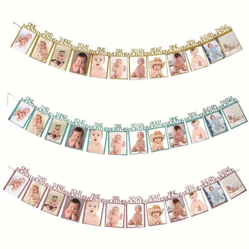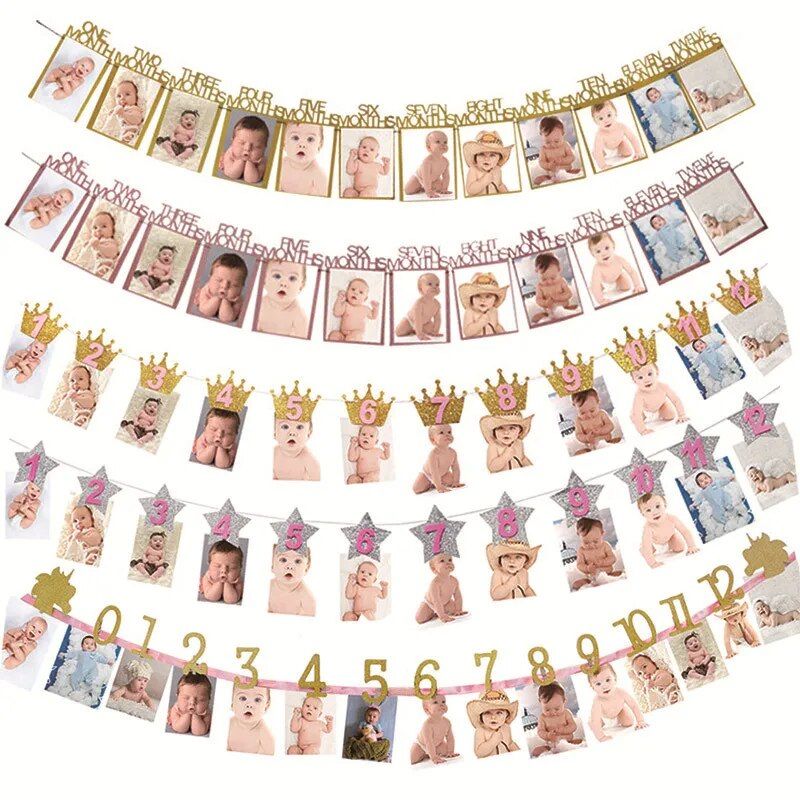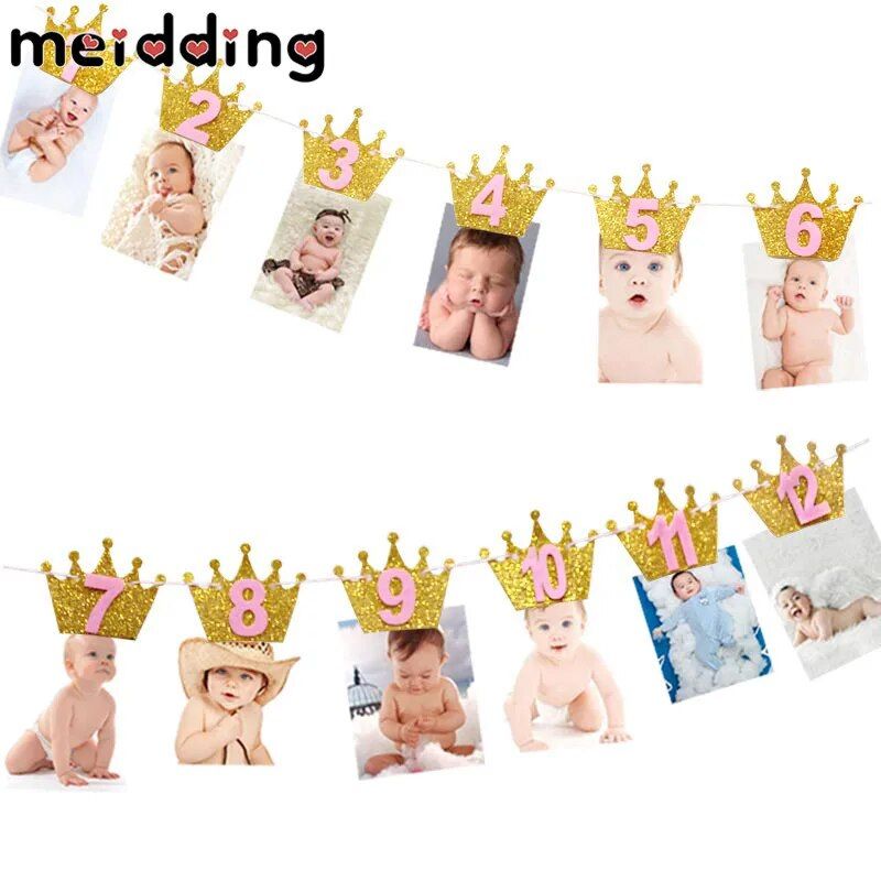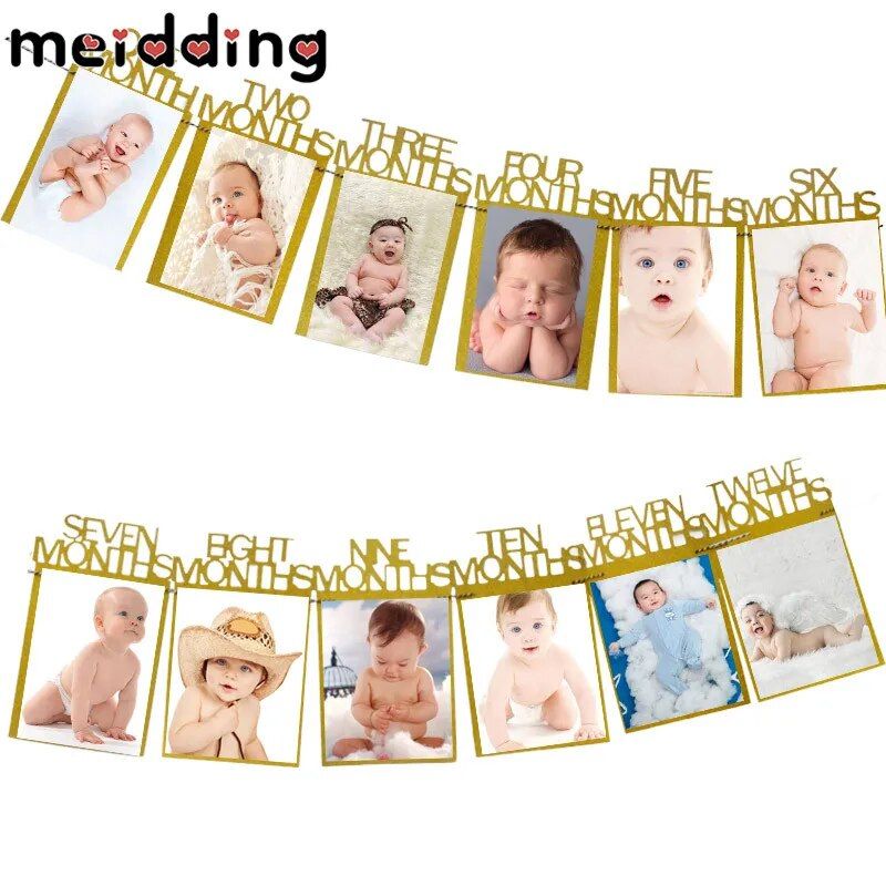 1*Meidding Baby Birthday Banners 12 Months Photo Bun