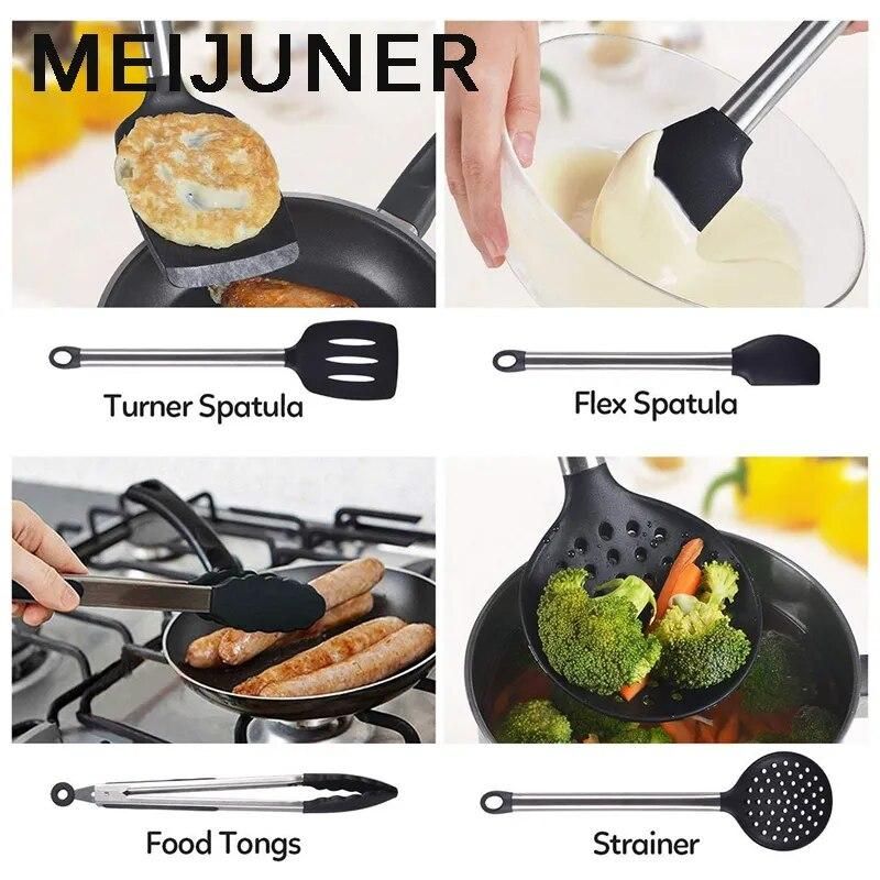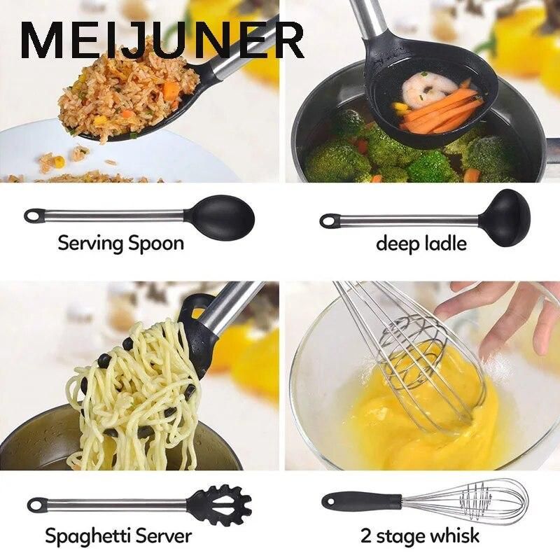 Buy Meijuner 9Pcs Kitchen Silicone Tools Cook Tools Kitchen Gadgets Cooking Tool Egg Beater Spoon Spatula Brush Kitchenware MJ272 in Nigeria