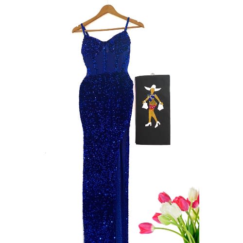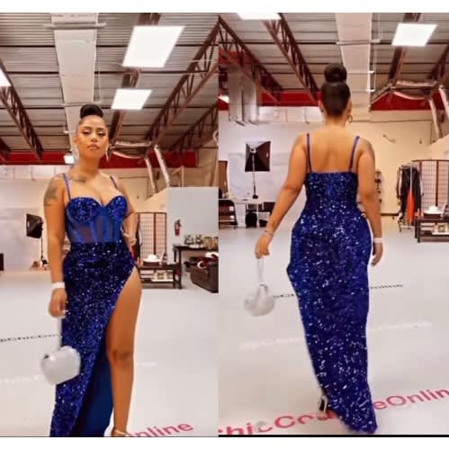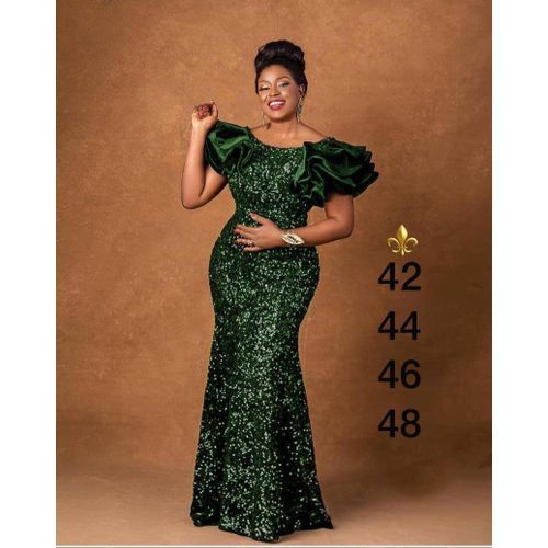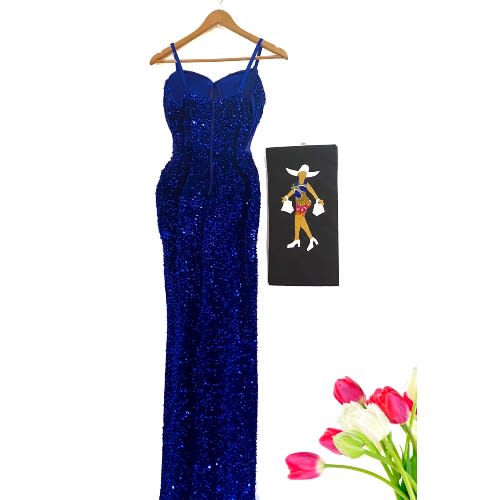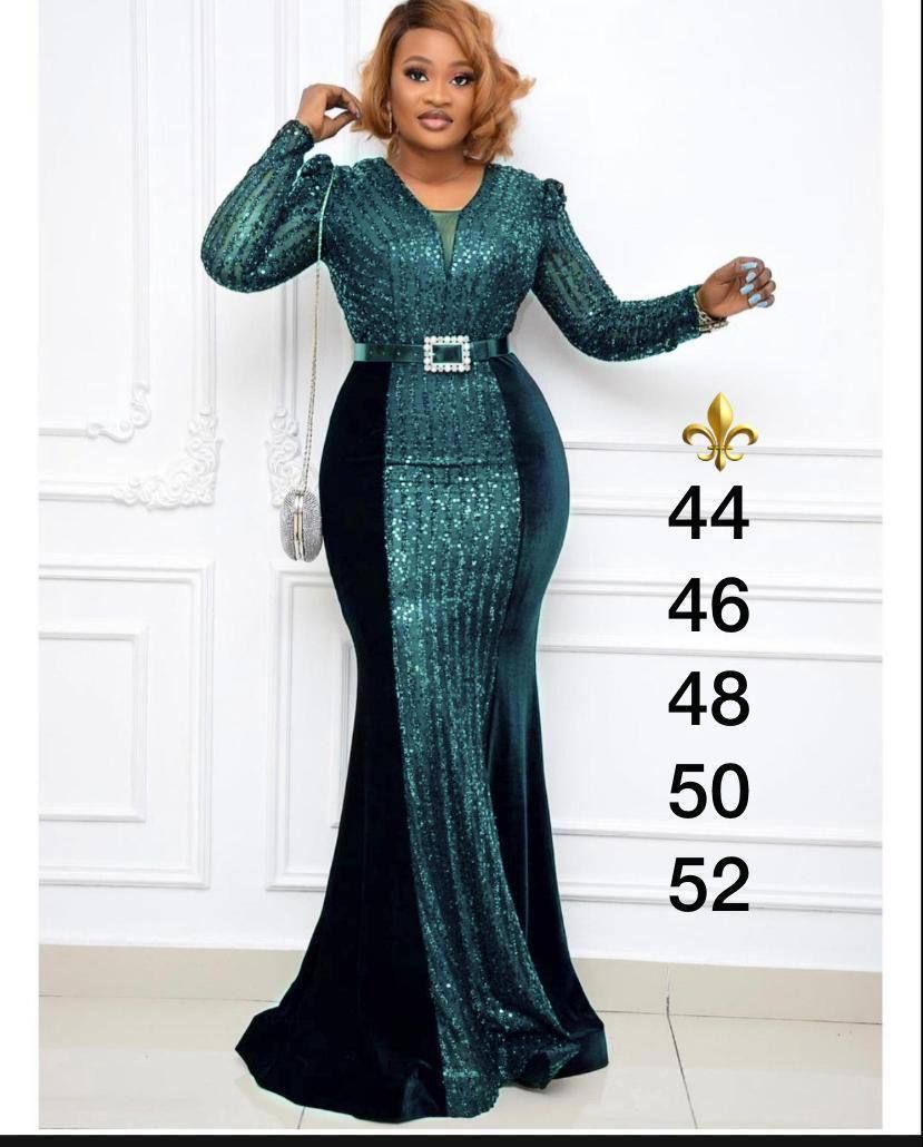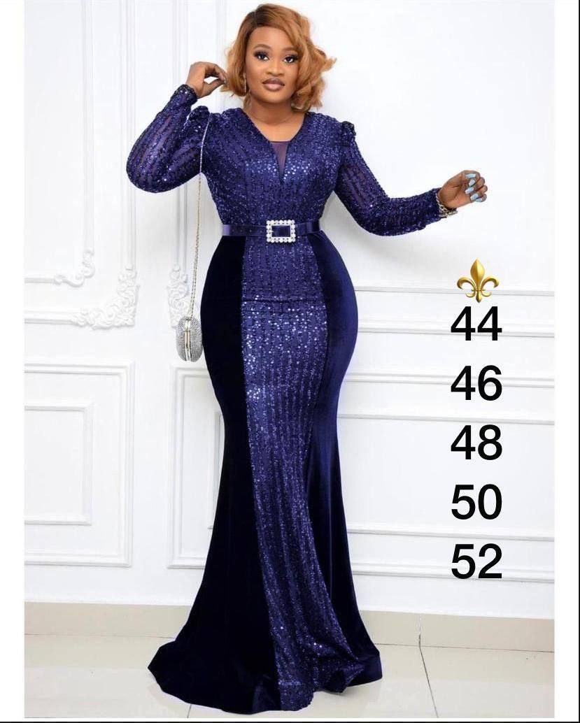Buy Melisia Mesh Sequins Velvet Maxi Bodysuit Dinner Gown Party Dress - Royal Blue in Nigeria