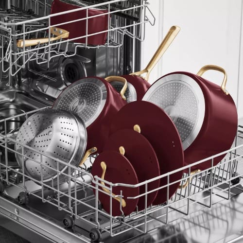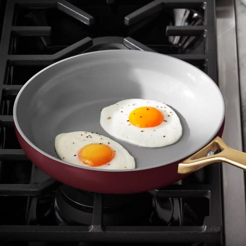 Unlike traditional nonstick cookware, this set of pots and pans features ceramic nonstick interior. Now you can enjoy superior nonstick performance with high release and easy cleaning after every meal. The impact-bonded honeycomb base makes this set safe for all stovetops, including induction. Plus, these pans are oven safe up to 450°F—talk about versatile!