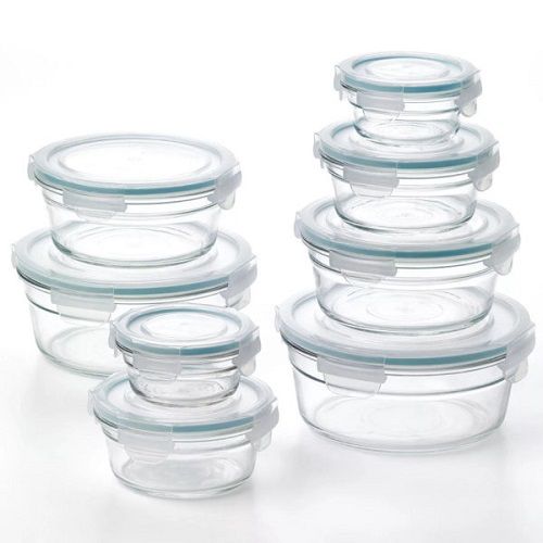 SpecificationsSet includes 8 Glass Food Storage Containers and 8 Locking LidsTwo round 0.8 cup container with lidsTwo round 1.9 cup container with lidsTwo round 3.6 cup container with lidsTwo round 6.2 cup container with lidsSet includes a variety of sizes to meet your serving and storing needsEasy to open and close four latch polypropylene lidsClear design makes it convenient to identify the contentsMade of silica, soda ash, limestone and other natural components. Does not contain any harmful environmental hormonesBPA free and recyclableRemovable silicone seal for easy cleaningEasy StorageOne of this set's handy features is that it nests within itself thus taking up minimal shelf space