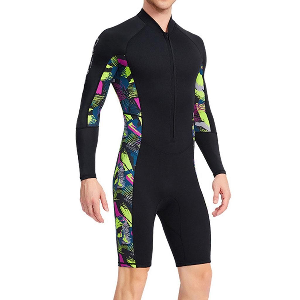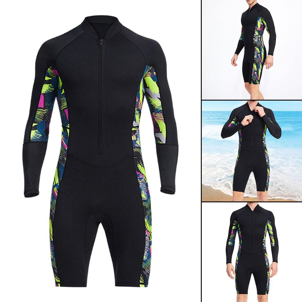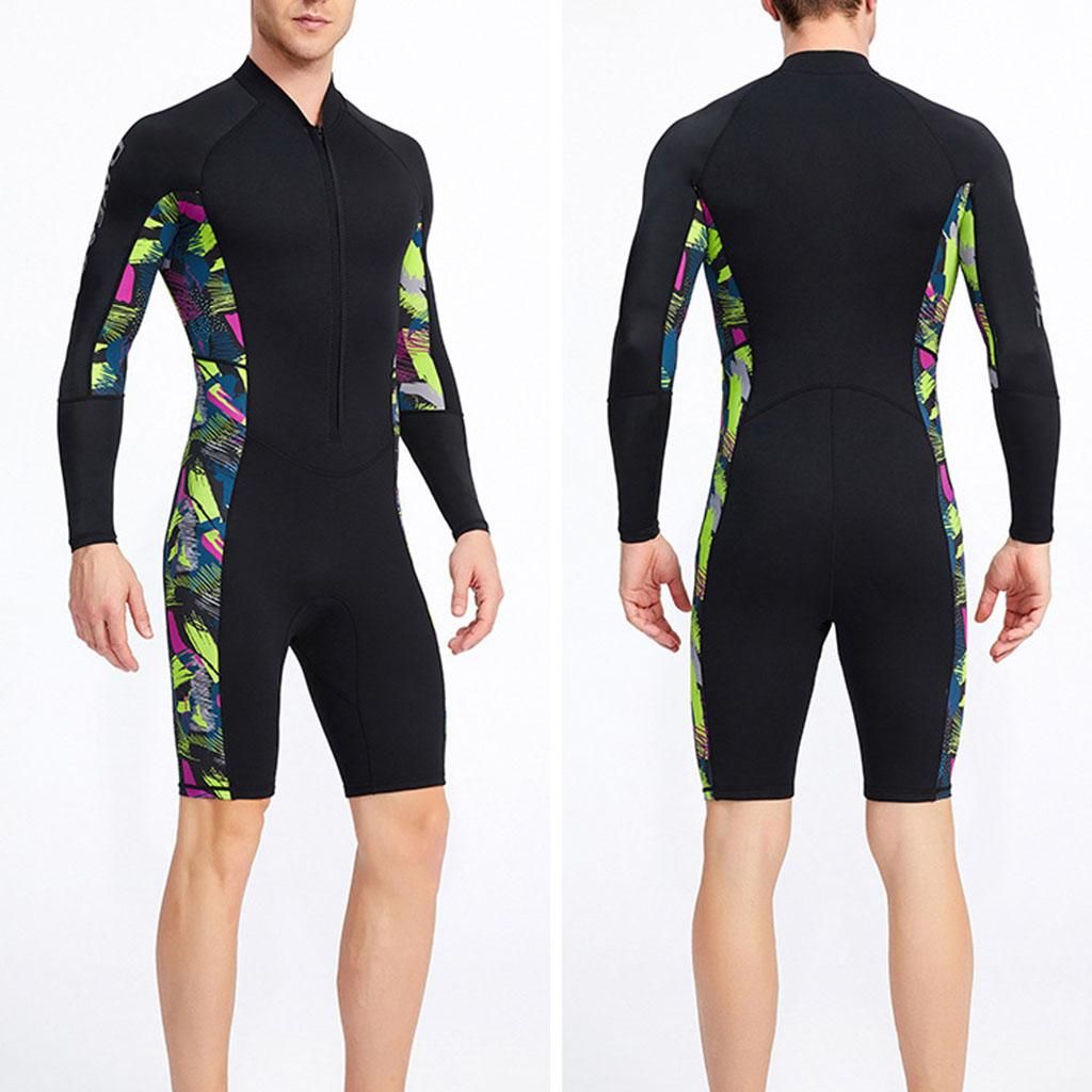 This wetsuit shorty is made of 1.5mm neoprene and nylon ,It can protects you from sun, stings and abrasions, lightweight but keep warm. With zipper closure at front provides easy put on and take off, closing trousers design, fits the legs. Wetsuit front zip provides UV protection, UPF50+ and against sea lice, jellies and other biological irritants This long sleeve shorts for wetsuit shorty men is specially designed for water sports and water aerobics, perfect for surfing, diving, paddle sports, windsurfing, lake activties and other water activities Handwash in cold water for this wetsuit men with mild detergent and flat to dry, no , no bleach.